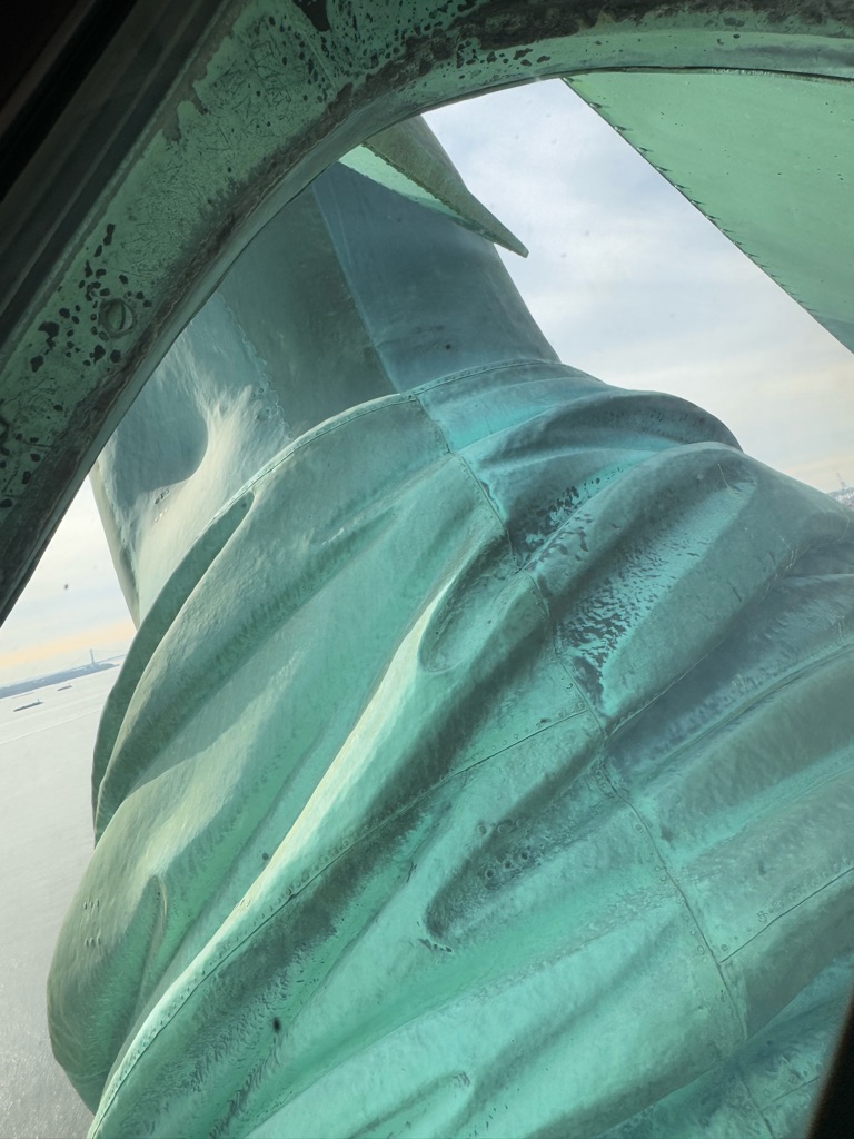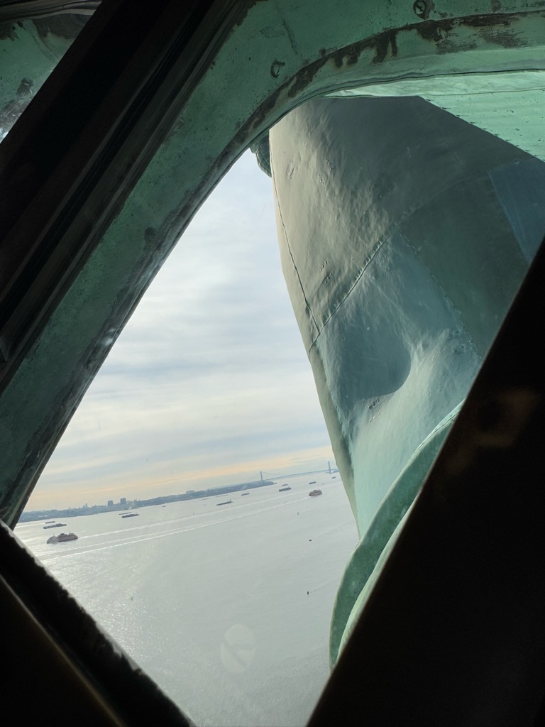 We jumped on the boat and headed out to the island. Climbing up to the crown was awesome and amazing to see how it’s constructed. The outside is actually very thin and the inside kind of looks like the Eiffel Tower - which makes sense because Eiffel was the architect for the interior!
