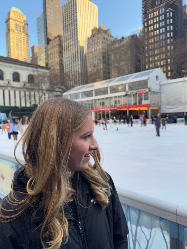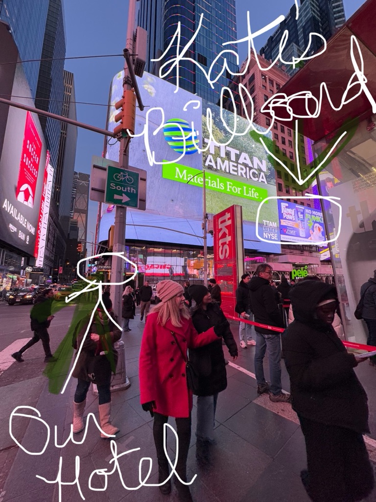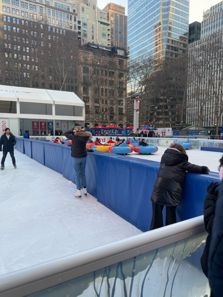 After Madame Tussaud’s, we went to Bryant Park to do the bumper cars on ice! \240It was really fun. Next we headed back to the hotel to change for dinner and happened to look up and see Kate on a billboard!