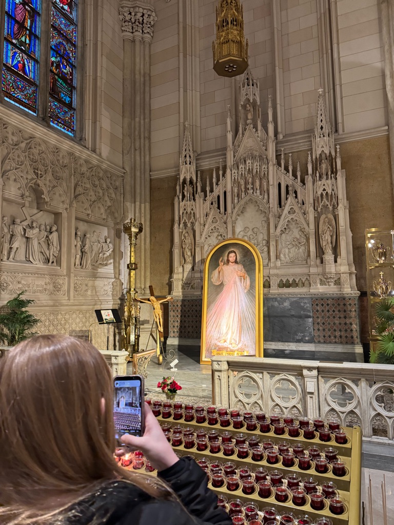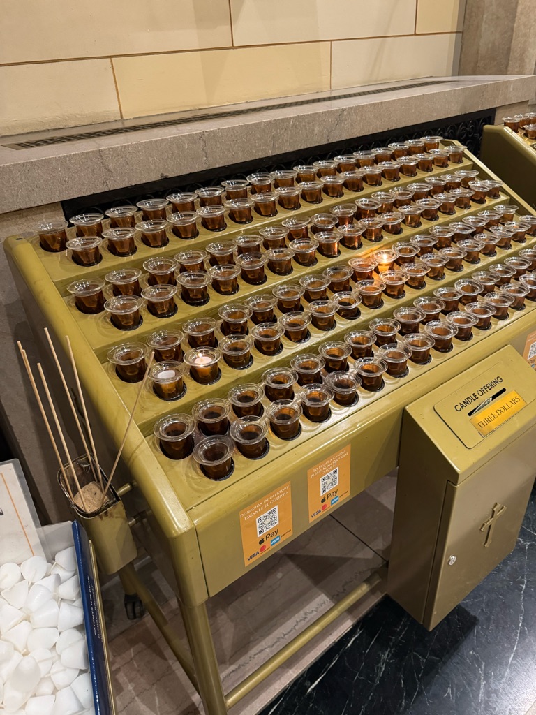 After mass, we did an audio tour of the cathedral. It covered the architecture, the saints, St. Patrick (holding a Shamrock - he used the three leaves to explain the holy Trinity. Separate but all one in the same). We heard about Our Lady of Guadalupe and winter roses, and St Brigid and her ever-expanding cloak. They told her she couldn’t have land for a convent, and she asked if she could just have as much land as her cloak would cover. Miraculously, it kept expanding and the leader helped her build her convent and converted.