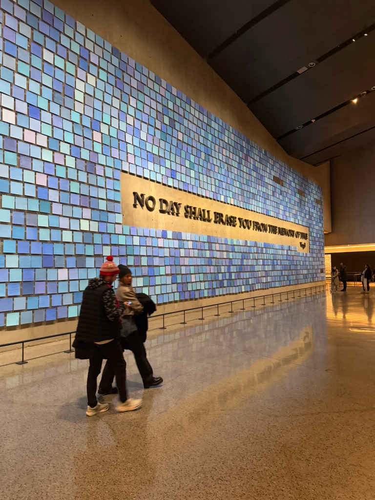 After the pizza, we met a tour guide that took us to the 9/11 mamorial. He had the awesome stereotypical New York accent! He was very informative about 9/11. He talked about the timeline of it and about what they do to honor the people who where killed (like how they put a white rose in their name if it is their birthday). Then, he dropped Kristin and I off at the museum. We walk through it. The museum was truly touching and was very well done. I think that it is a good thing to remember and learn about that day.