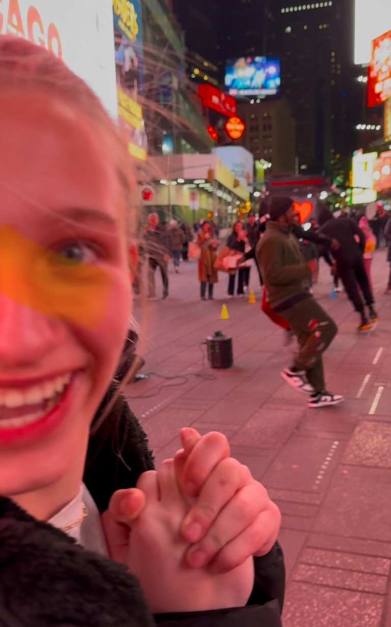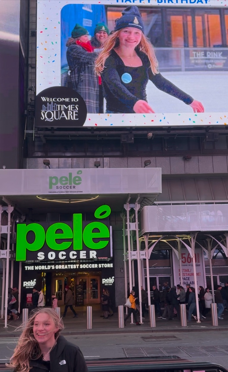 As soon as we got on, the asked “Katie” how her birthday trip was going, how she liked shopping in SoHo, and how the weather was for ice skating. They said it’s so fun to be on a trip with your aunt “Kaitlyn” - were you named after her!? Our alter egos didn’t last long before they figured out our real names, but it was super fun throughout! \240There was even a street performer singing happy birthday to Kate!