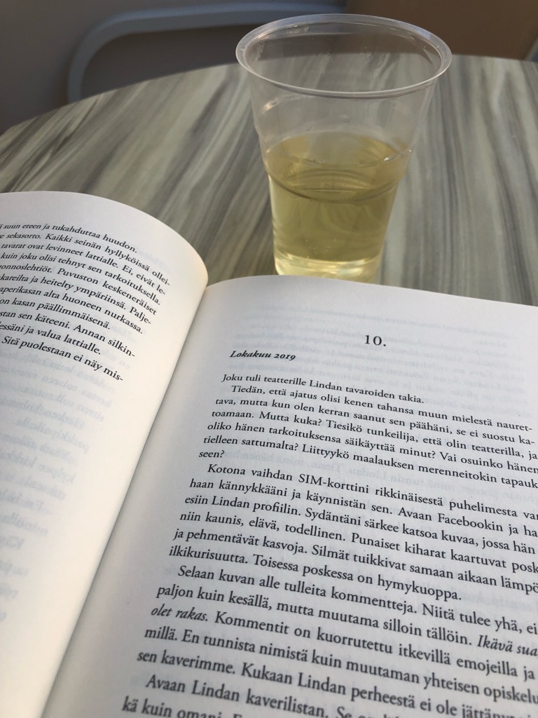 Viiden jälkeen vähän puhki jo eli pesulle ja vaatteiden vaihtoon. Pienen hetken makoilin sängyllä ja luin, niin ihan väkisin meni silmät kiinni. Piti sijoittautua söpölle terassille lukemaan.