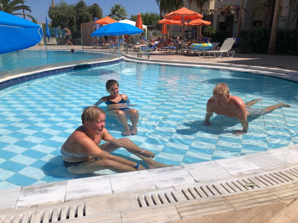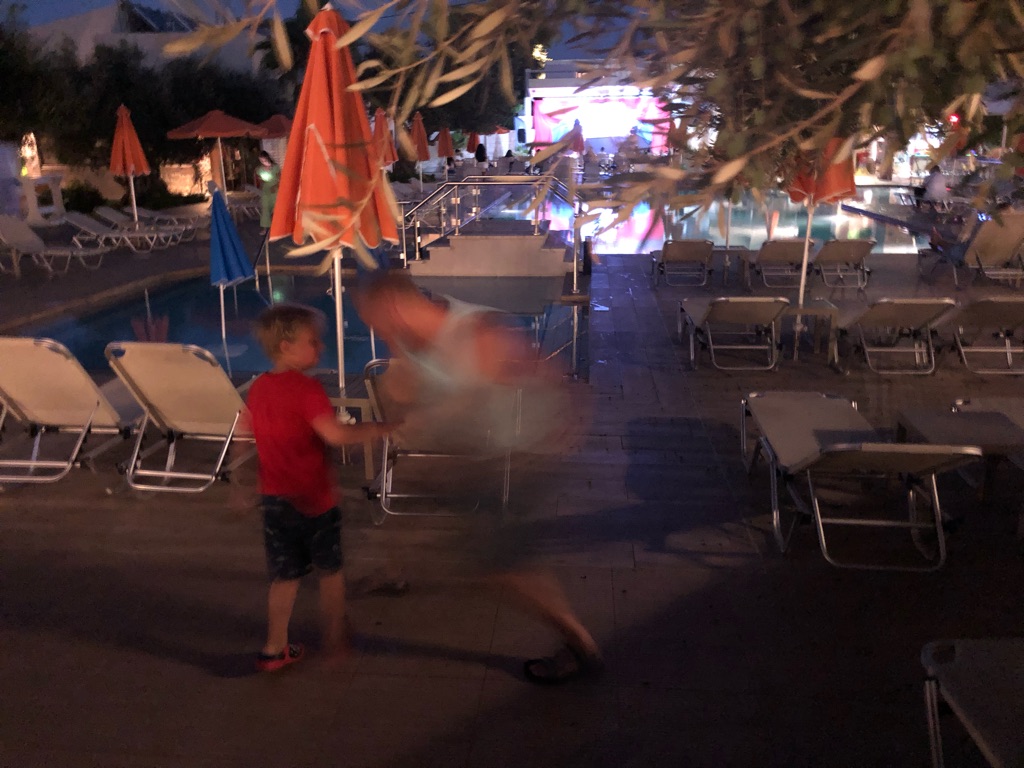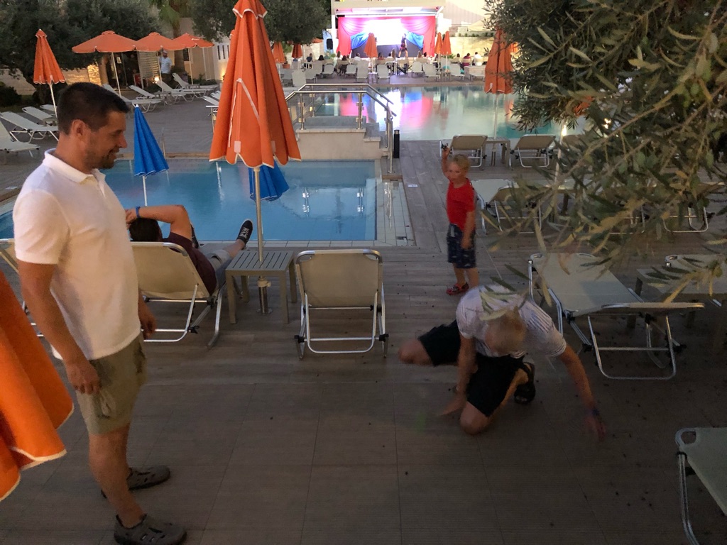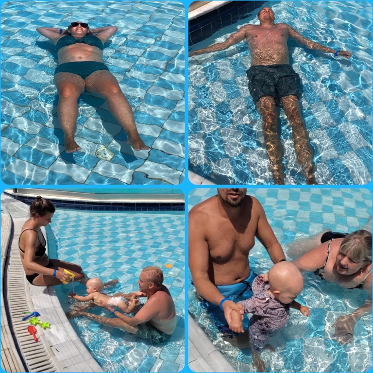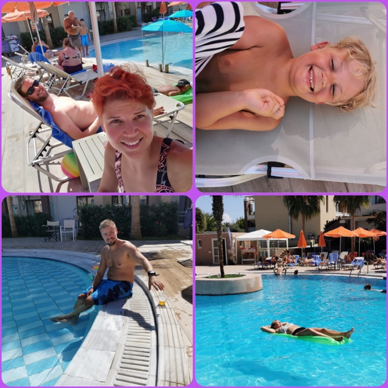 Pienen säädön jälkeen saatiin kaikille sopivat huoneet. Lapselliset mummun ja papan viereen vähän kauemmas altaalta ja me yökukkujat altaan viereen.