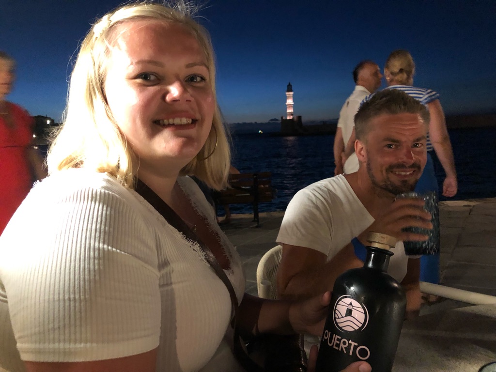 Tervetuloa jo lentokentältä. Saatiin Hanian ainoa taksi jossa turvaistuin (ja ihan sattumalta). Meillä myös autossa hyvä ilmastointi. Yhdessä toisessa oli kuulemma vähän märkä matka.