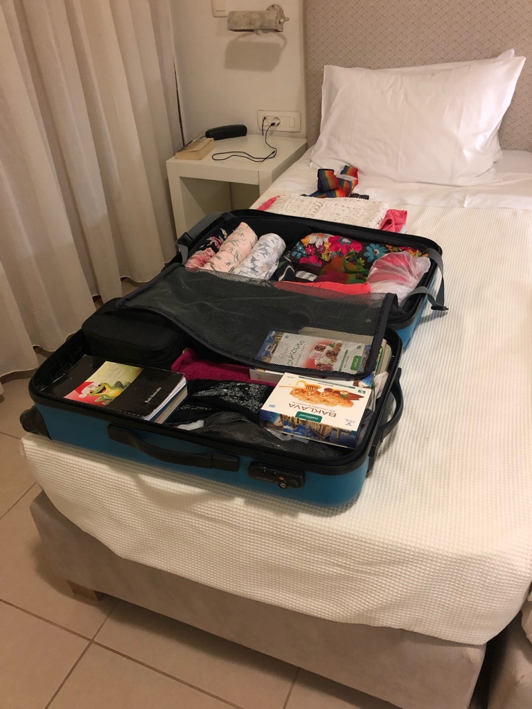 Tsekkaus ei todellakaan alkanut 2,5 tuntia ennen, mutta saatiin liput ja laukut ruumaan.