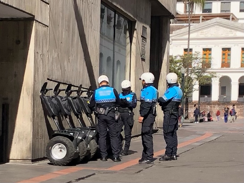 PS: Während wir diesen Eintrag in der Lobby unseres Hotels schreiben, sind wir umgeben von Polizei, Militär, Fersehkameras und wurden von einem Sprengstoffspürhund beschnuppert. Zum Glück bereitete das Notizbüchlein dieses Mal keine Probleme. Der Hotelbesitzer hat uns soeben mitgeteilt, dass der Vizepräsident von Ecuador in einigen Minuten eintrifft. Jetz macht die Situation Sinn.