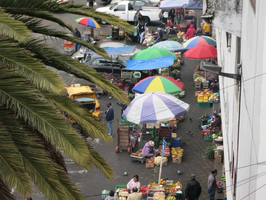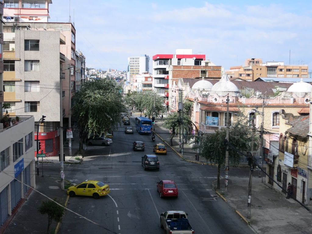 Wir wohnen nun seit eineinhalb Wochen in einer großen Wohngemeinschaft mitten in Quito mit sowohl Locals und Touristen. Es gibt einen wunderbaren Mix aus verschiedenen Kulturen, Sprachen und Lebensweisen. Von unserem kleinen Balkon aus haben wir eine wunderbare Aussicht auf die Stadt und können das Tun auf unserer Strasse verfolgen. Manchmal zieht lautverkündend ein Mangoverkaufsbüsslein vorbei oder es weckt uns ein Partybus um Mitternacht (auch Dienstags?!) der an der nächsten Ecke einen Stopp einlegt. Auch Sirenen bemerken wir kaum mehr.