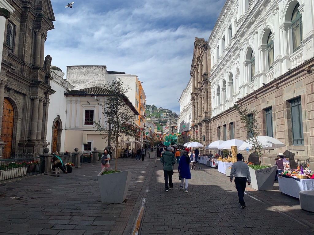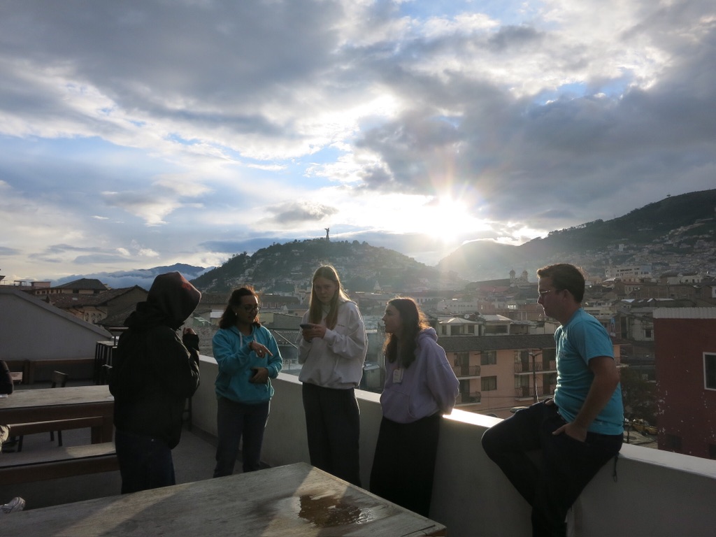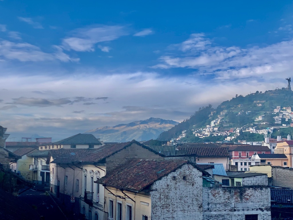 We wonen nu anderhalve week in een grote woongemeenschap midden in Quito, met zowel locals als toeristen. Er is een geweldige mix van verschillende culturen, talen en levensstijlen. Vanaf ons kleine balkon hebben we een prachtig uitzicht over de stad en kunnen we het leven op onze straat volgen. Soms komt er een mango-verkoopbusje luid schreeuwend voorbij of worden we midden in de nacht (zelfs op dinsdag?!) wakker door een partybus die stopt bij de volgende hoek. Ook sirenes merken we bijna niet meer op.