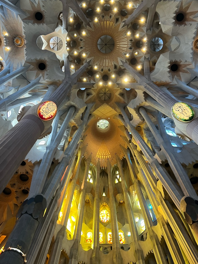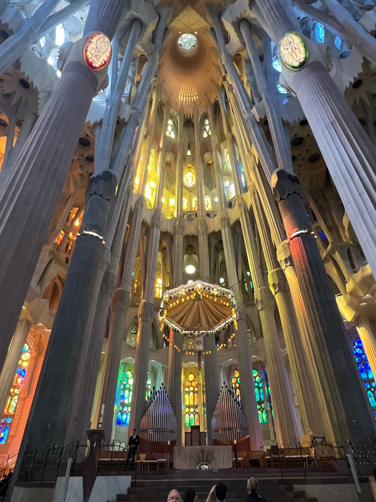 Arrived at the Sagrada Familia for our 3:30PM time slot. \240Architected by Antoni Gaudi. \240Really unusual, but beautiful!