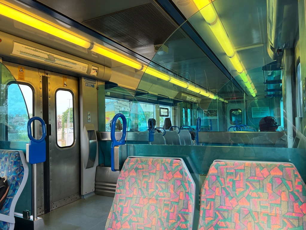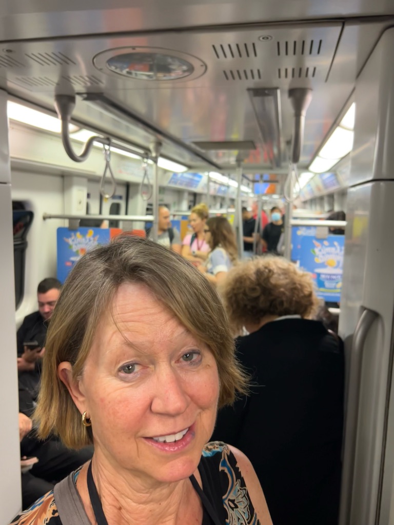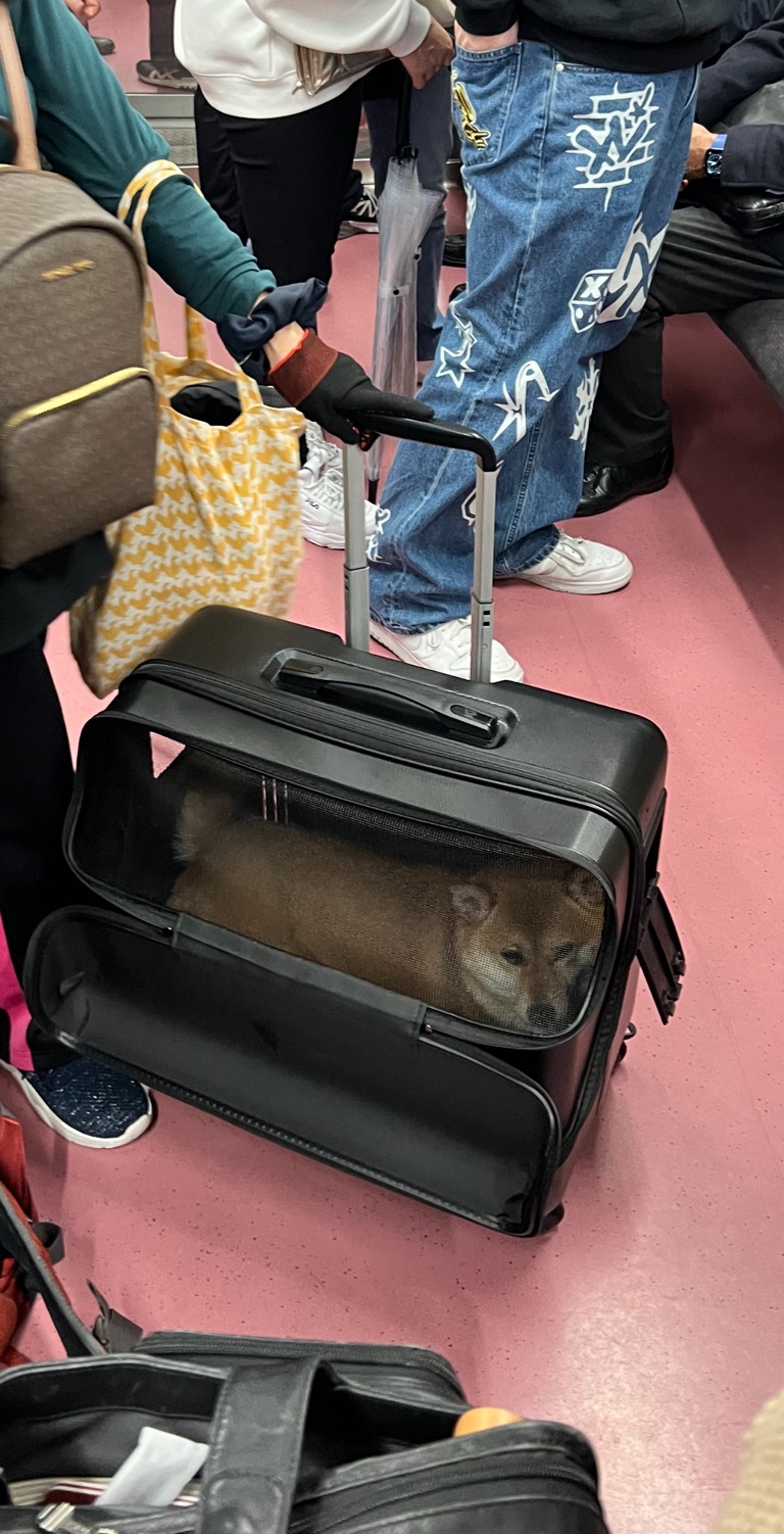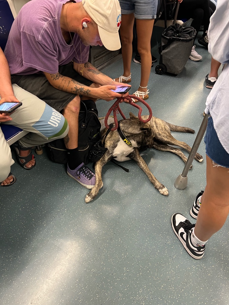 On the train from the airport in Barcelona to our Hotel. \240Glad to see they lover dogs here too!