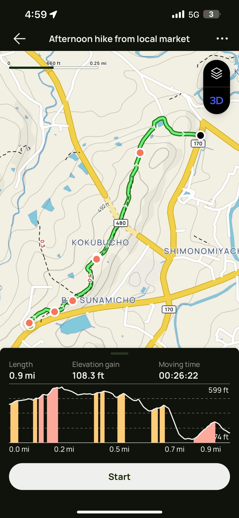 Half mile walk to the train station, about a 50 minute train ride, then a 1.5 mile walk to the park.