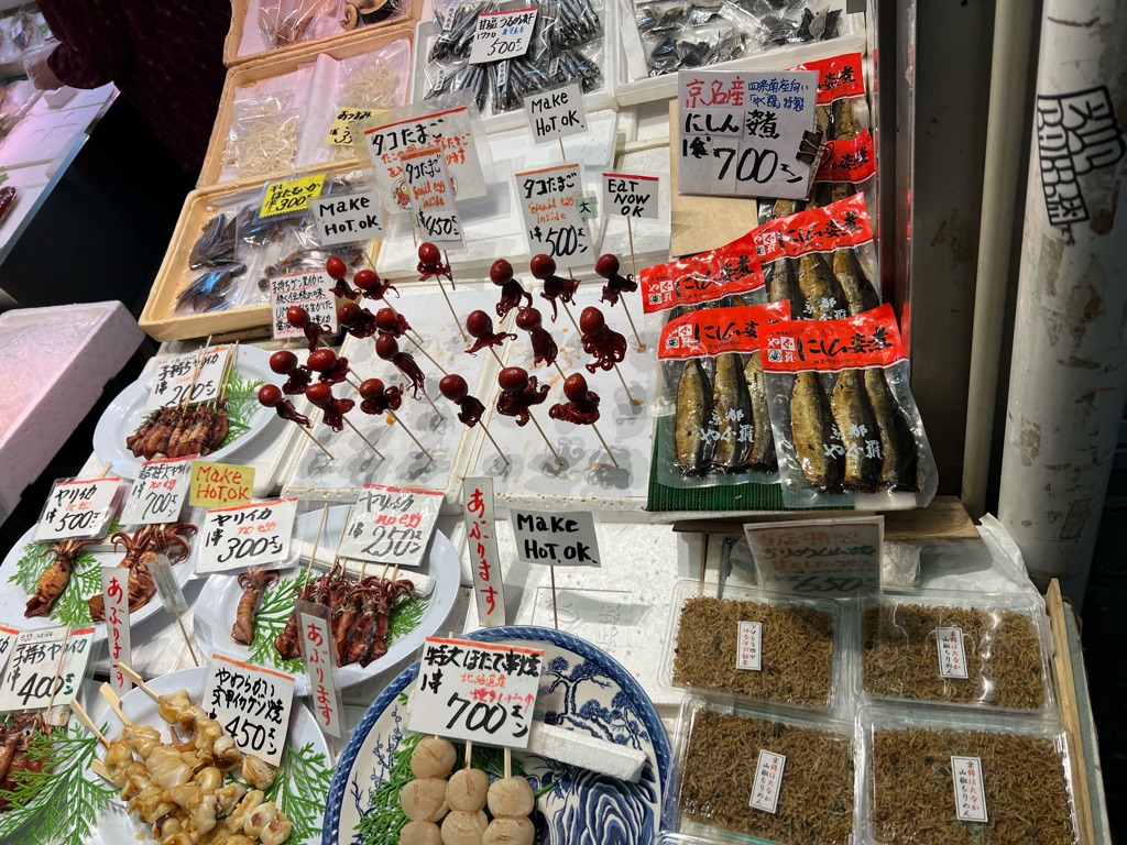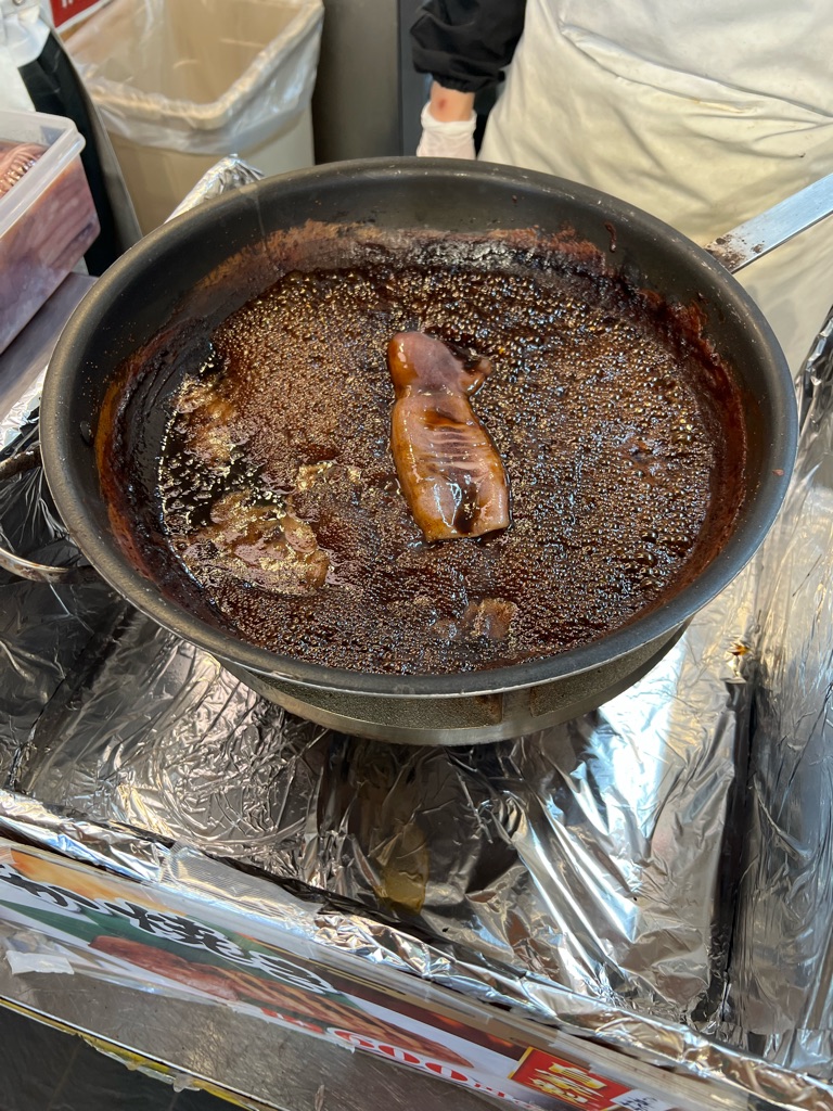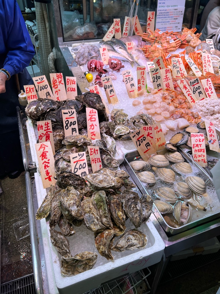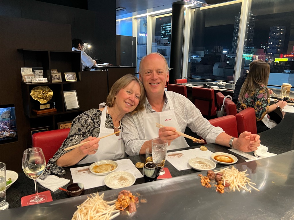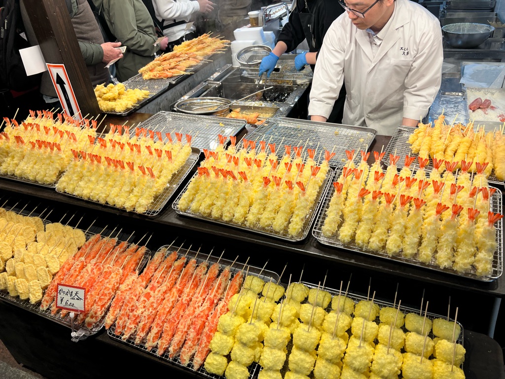 Saturday wound up being our day of rest… We really didn’t do much. \240The hotel was not ready for us to check in when we arrived, but the train station had a GIANT food area with probably 40 different little restaurants. \240We picked one that seemed like it had some good transition (to Asian) food, like chicken. \240But they eat all parts of the chicken. \240You could choose between heart, gizzard, tail, thigh, and “lever”. \240Didn’t really want any of those, and had no idea what part of the chicken “lever” came from, so we’d skip that too. \240Figured we’d keep it simple and just get the 5 skewers of what we though would be tenders. \240Well it turned out rather to be an assortment of all 5 parts of the chicken. \240Who knew “lever” is liver?!? \240Kim couldn’t eat the tail parts (too chewy / fatty), and the gizzards were pretty tough. \240But Marc powered throuugh all of it… 😂