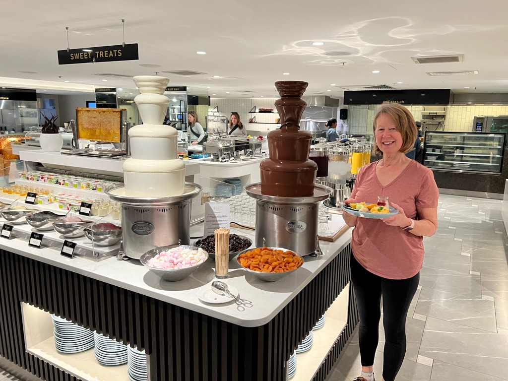 Kim couldn’t decide what to dip in the chocolate fountains.