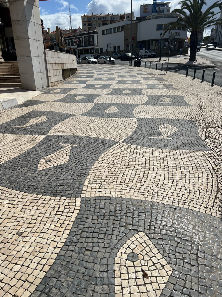 Cool sidewalk in downtown Cascais. \240Definitely wouldn’t want to walk on it after drinking too much!