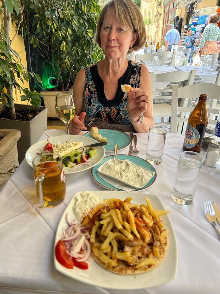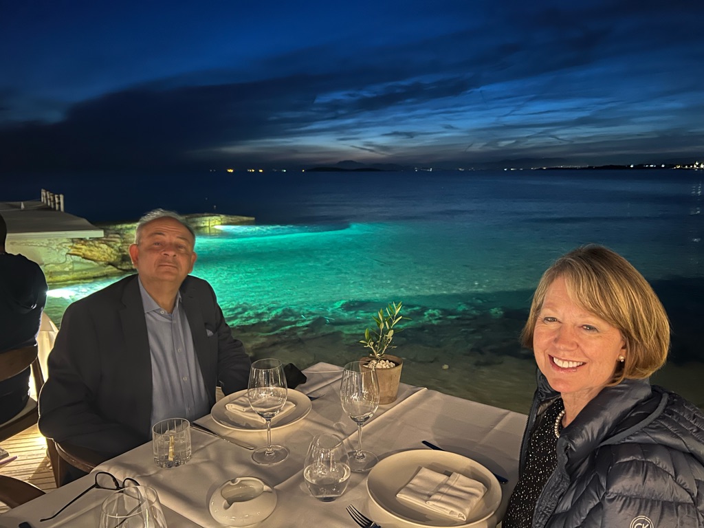 Had a fantastic time in Athens visiting with our great friends, John and Nana! \240We went out for a great dinner with them last night at the Astir Palace, but unfortunately forgot to get ANY pictures! \240Oh well, WE have great memories of it…. At least here’s a picture of Nana (whom we refer to as Jackie Kennedy):