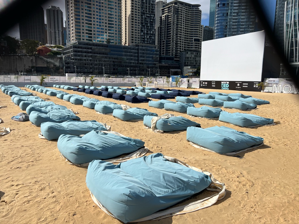 Went for a walk after our (now typical) large breakfast. \240Our room looks down on this really cool movie theater called Mov’In Bed Beach Cinema (http://movinbed.com). \240They filled an empty lot by the water with sand and setup beds and a big movie screen. \240You buy a ticket for two or three people per bed. \240They have a different first run movie each night (tonight is Mean Girls).