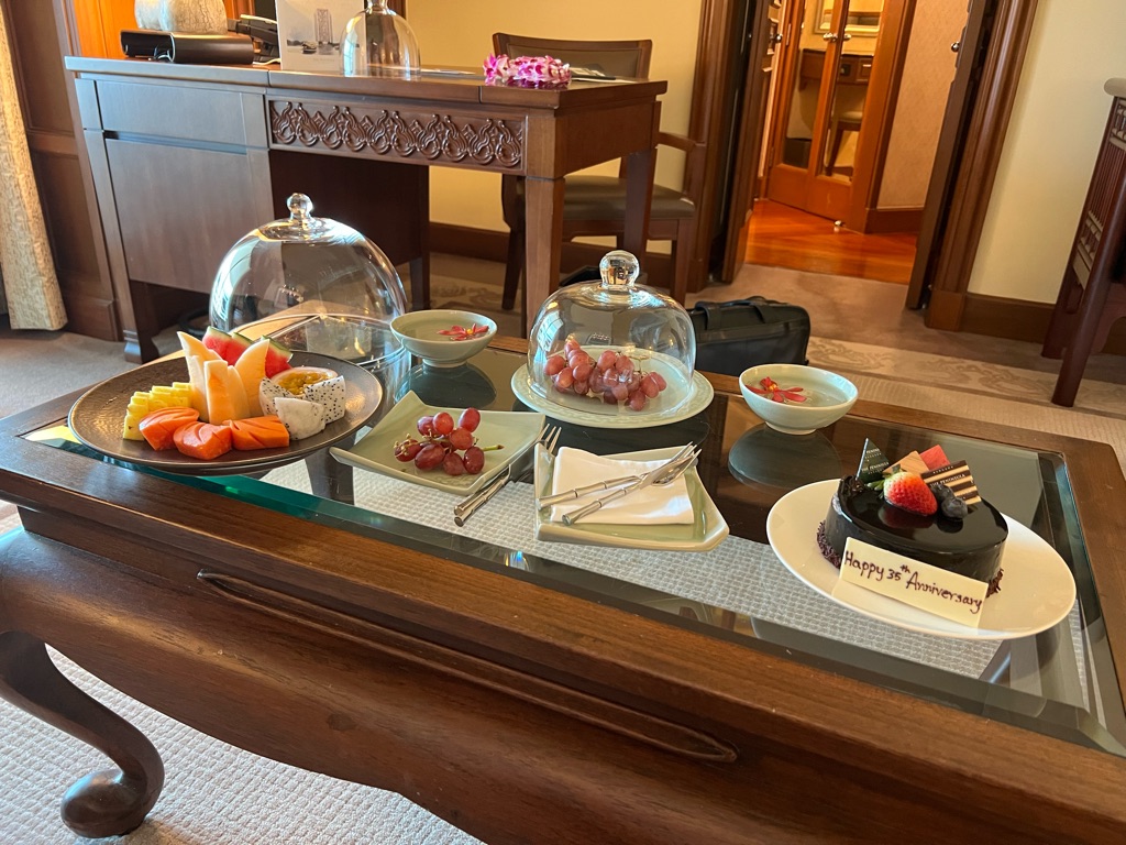 Arrived at our hotel (Lapa Palace) and were immediately impressed - beautiful old residence that has been added on to over the years. \240We had let them know it was our 35th anniversary (fudged by a couple weeks 😉) and therefore want a (true) King bed, and in the new wing (had seen poor reviews of the old wing). \240They had no problem with that. \240Even confirmed our special anniversary at checkin, asking what day specifically it was. \240We told them Wednesday, the 15th (it’s really on the 28th!). \240They said they would have something special for us.