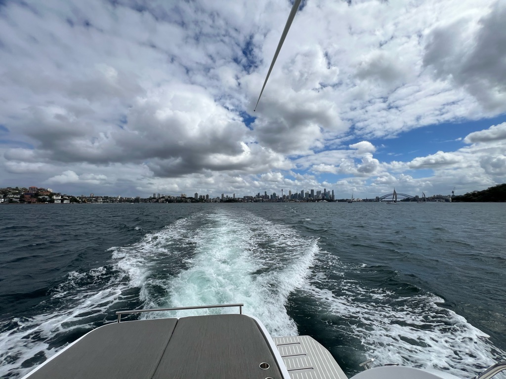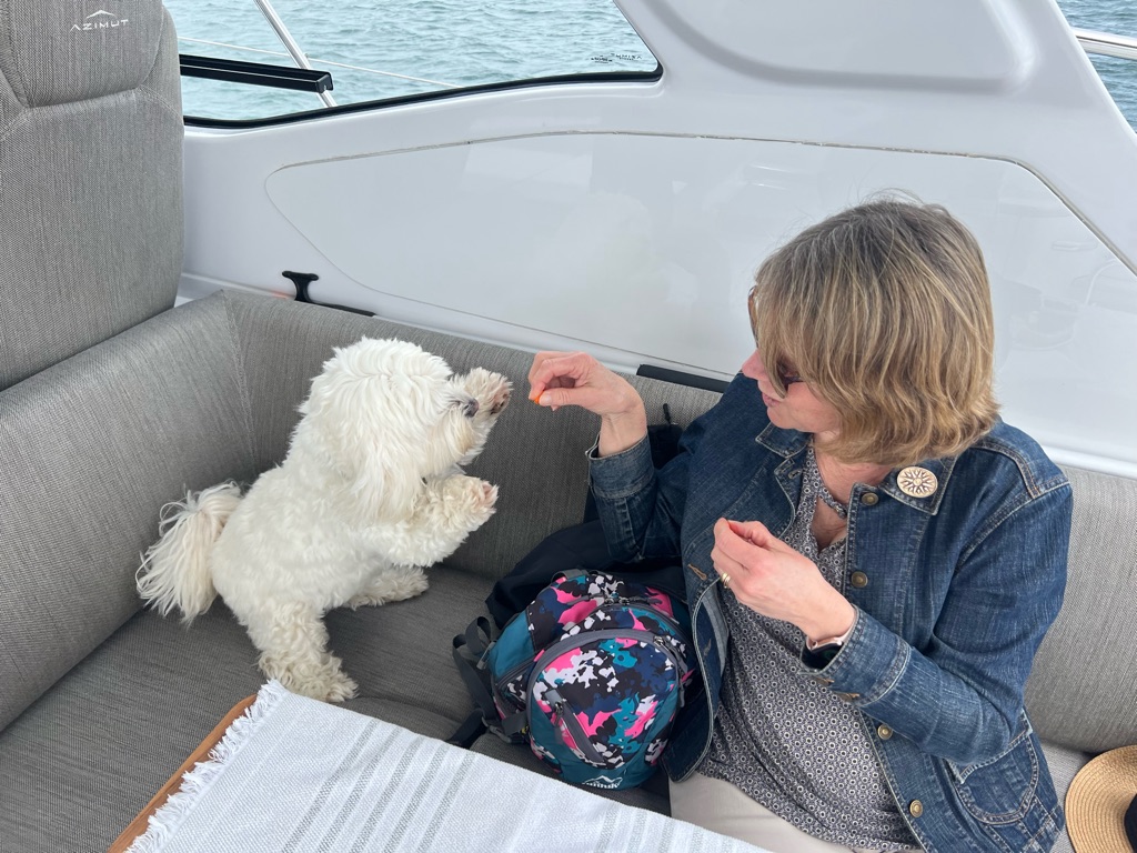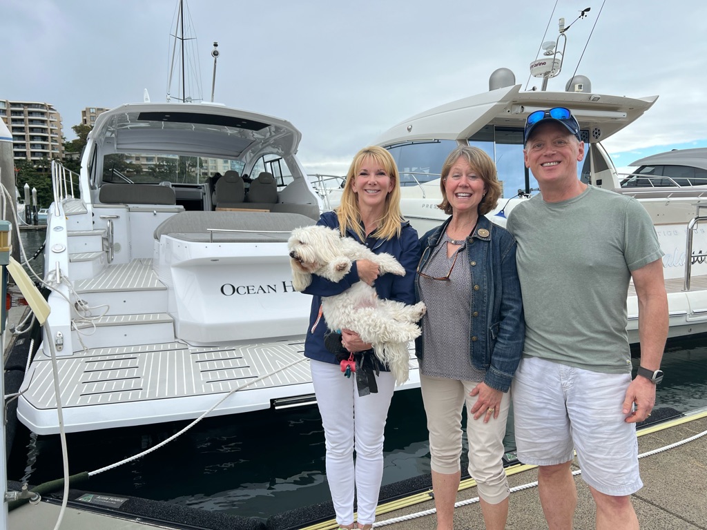 Then we headed over to a nearby marina to join a friend of ours (Michelle, Kelly’s sister) on their new boat for a cruise of the harbour. \240Unfortunately her husband (John) is on a business trip to Naples, FL of all places, but Shane (their boat manager) did a great job skippering the boat. \240We had a fantastic time with Michelle and her cute Havanese, Cosmo.
