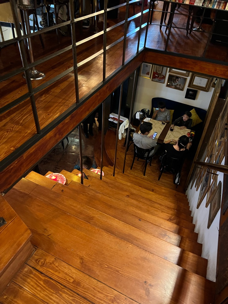 We were again seated upstairs. \240Too funny how they pack the tables in, even on the staircase.