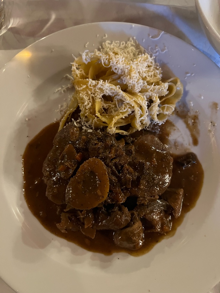 Decided to use our hotel credit this evening in the hotel restaurant. \240About twice the price of last night’s dinner, and not as good, so we’ll head back to Come Prima tomorrow night (and get more yummy pasta!).