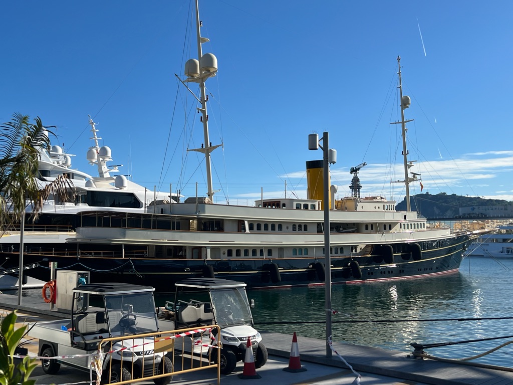 After visiting the Basilica, we walked over to Barceloneta, the beach area. \240Along the way, Marc found the boat he’d like to get…. The Nero, a 296’ Superyacht available to rent (https://www.burgessyachts.com/en/charter-a-yacht/yachts-for-charter/nero-00006250).
