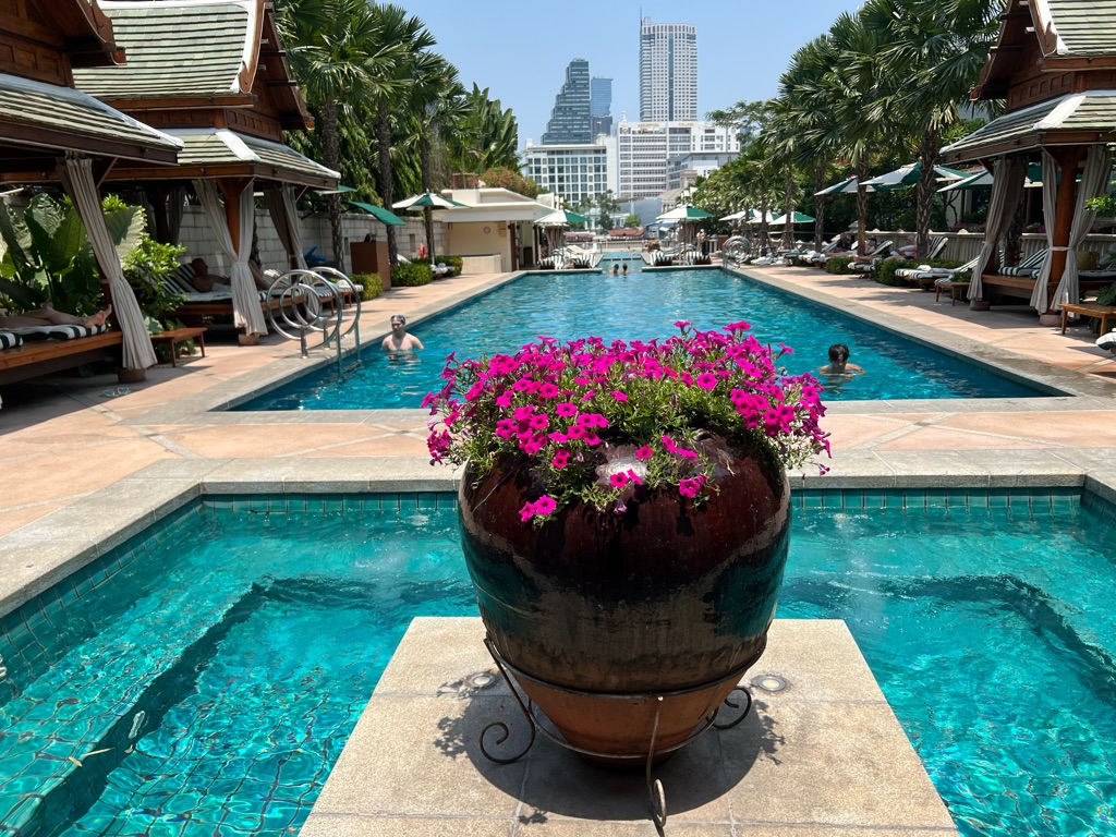 After breakfast we went for a walk around the hotel (Palace) grounds - beautiful! \240The pool is a large (sort of) infinity pool at a nice 86°F. \240This will be nice to come back to (although we never did… 🥲).