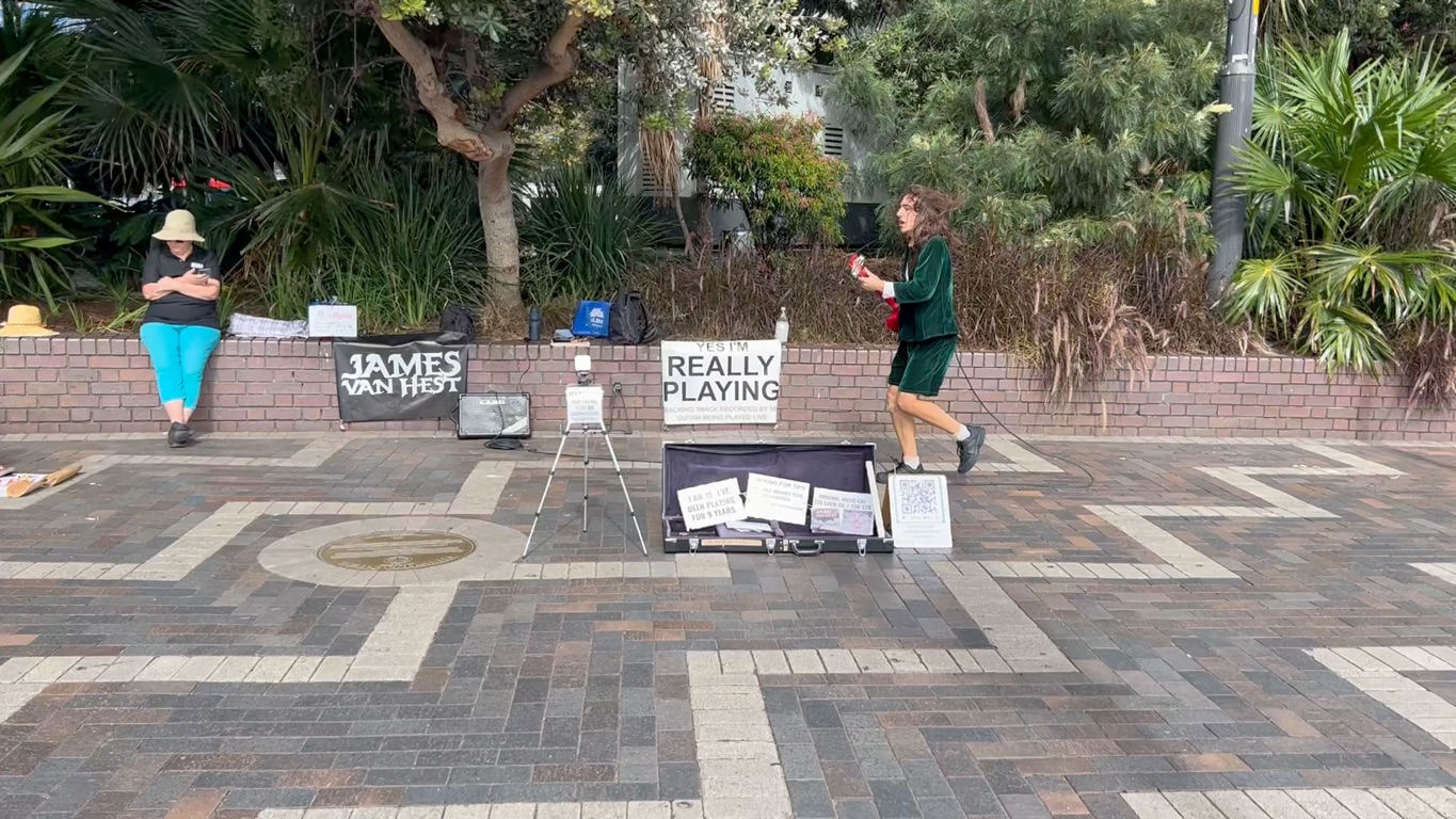 Very funny street performer along the walk to the ferry. He REALLY gets into it!