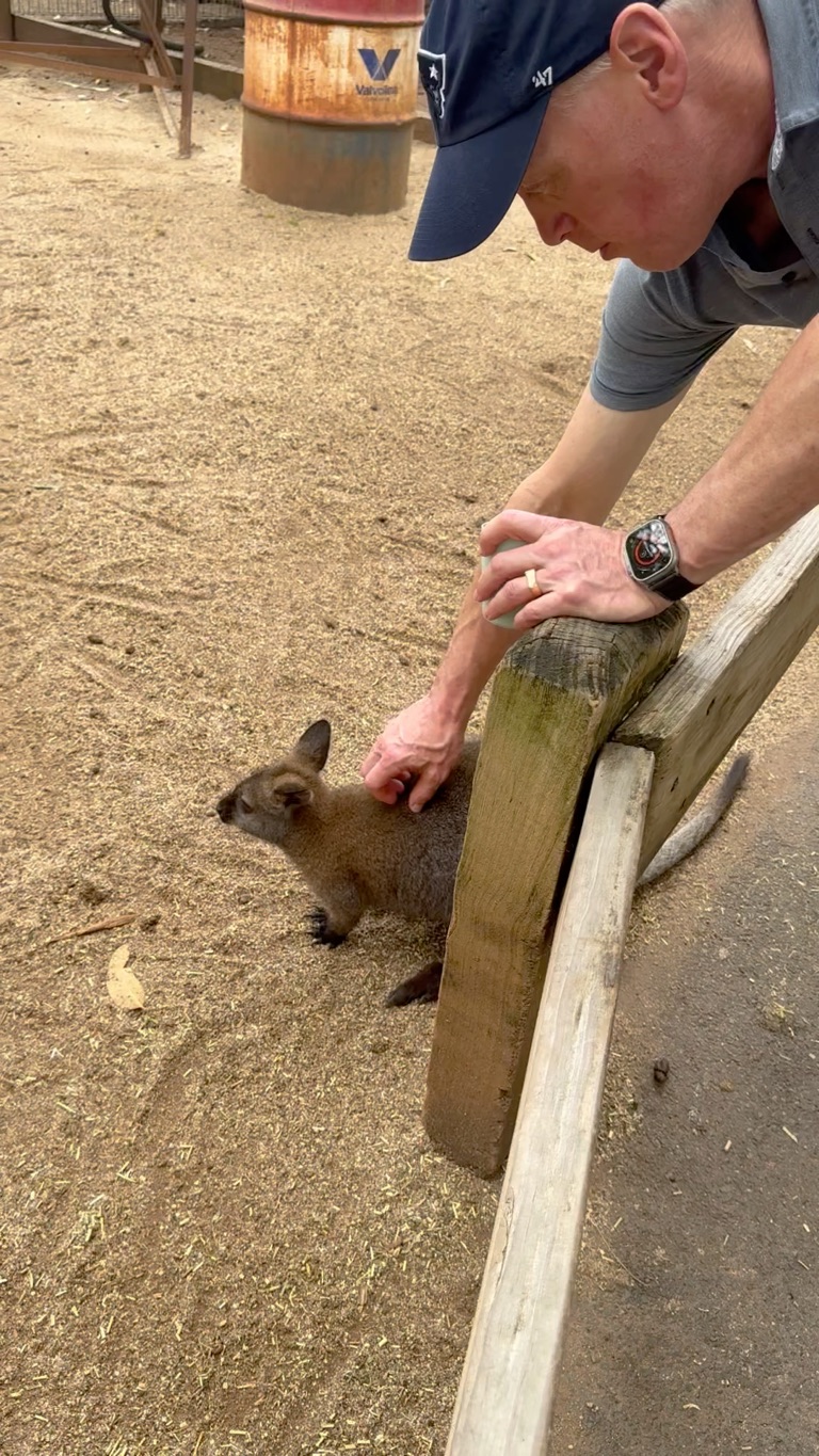 Russell (Crow) took a liking to Kim (and her cup of kangaroo food)