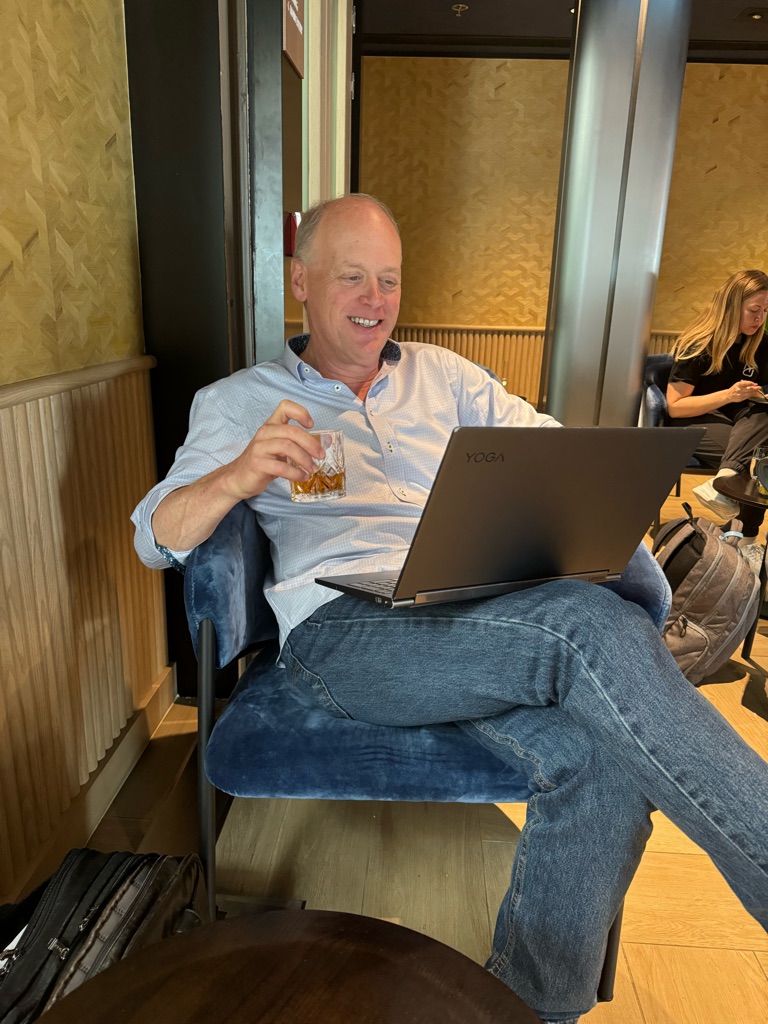 Trying out the lounge at Logan while waiting for our flight to JFK.