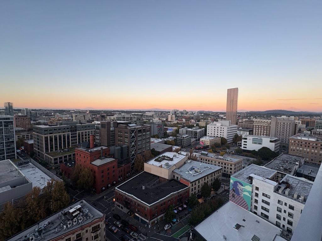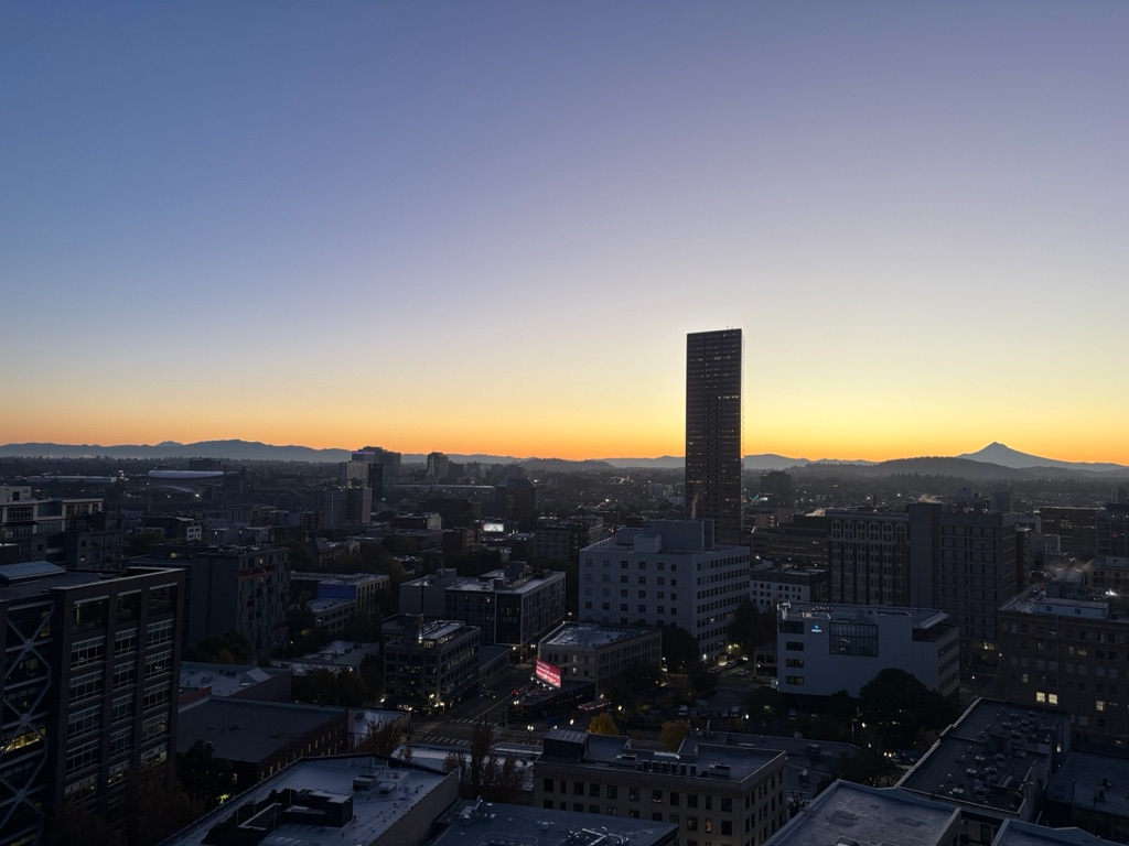 Our last morning in Portland began spectacularly: A beautiful sunrise over Mount Hood bathed the city in golden light, giving us an unforgettable farewell. After this peaceful moment, we made our way to the airport.