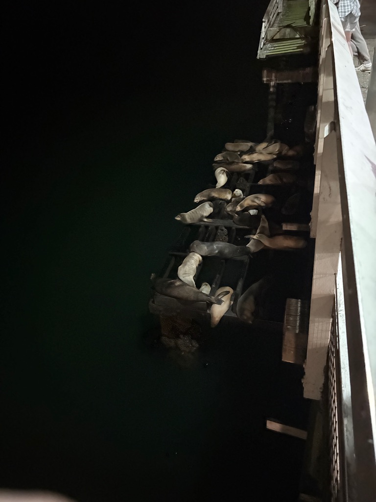 After dinner, we took a walk along the pier and spotted a small group of seals lounging on the beams below. The highlight of the moment was when one seal fell into the water and the others seemed to “laugh” at him – it genuinely sounded like laughter and had us all chuckling as well.