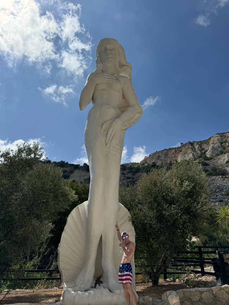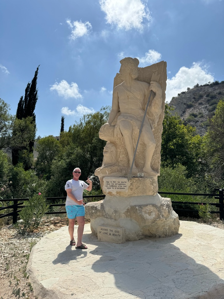 Another perk of traveling with older kids is charging them with planning some of our excursions. Cameron was on point today. After lunch we drove into the mountains to visit the Adonis Baths and waterfalls. It’s clear that Adonis (god of love) spent his time entertaining the ladies and not building or maintaining the roads leading to his oasis. 😂 A rough mountain road coupled with driving on the left side gave us all a thrill as we ascended the mountain. Once we arrived we walked through several statues to arrive at the fresh bath and waterfall.