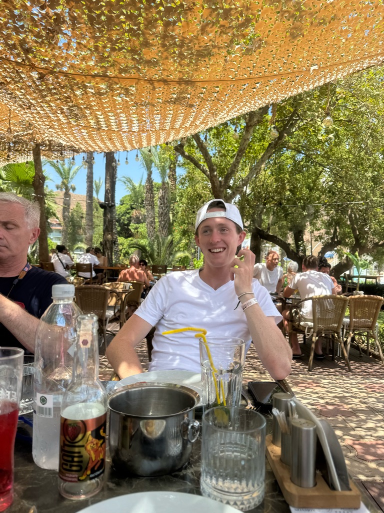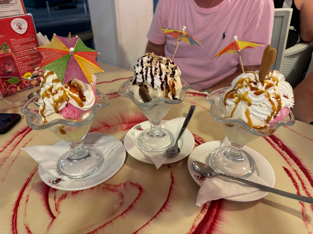 Cameron was up and out early for his 14 mile training run. When he returned we enjoyed breakfastl then hit the pool. Brandon chose to sleep in a bit and joined us poolside around lunchtime. I was reminded that menu items aren’t always as we interpret in the US. I ordered a grilled cheese and got just that.