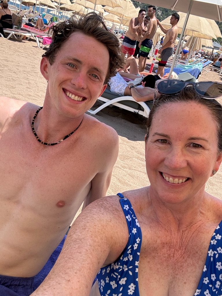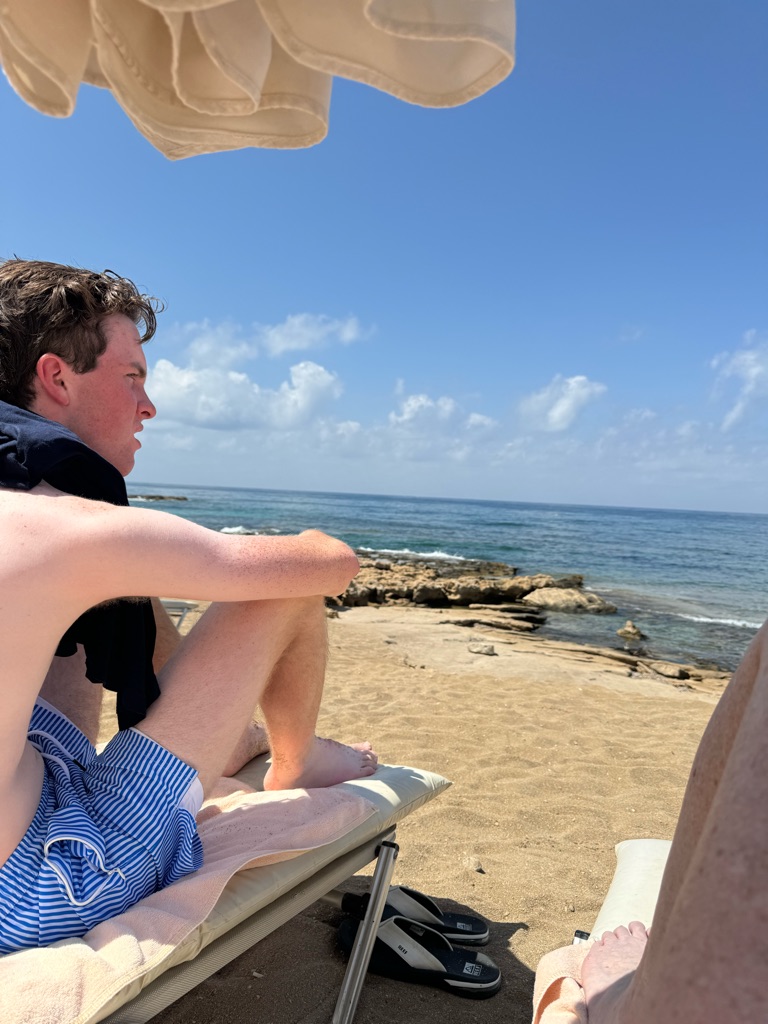 Yesterday we eased in with time at the beach and sleeping in a bit. Cameron is sticking to his training routine and realizing earlier is better as it gets quite hot as the day goes on. The breeze off the sea is lovely, but the sun is intense. Must actively manage the SPF 😎