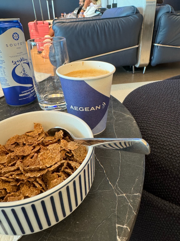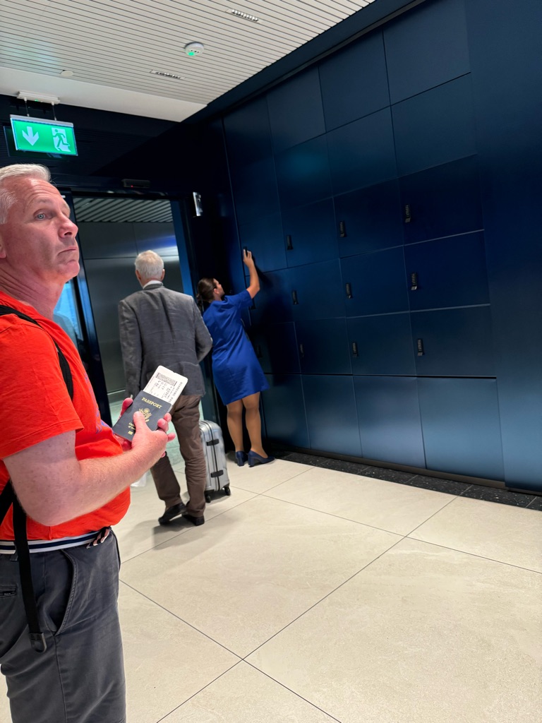 Given we were connecting back through Athens that meant a possibility of getting it back. Better than sitting in Larnaca. I wasn’t super hopeful but as we made our way to the terminal we located it was last seen at the Aegean Airlines lounge. We had stopped there on Sunday. I explained my situation to the agent at the desk. She asked a few questions then went to a wall of lockers.