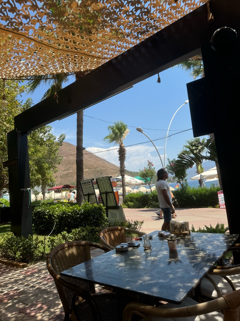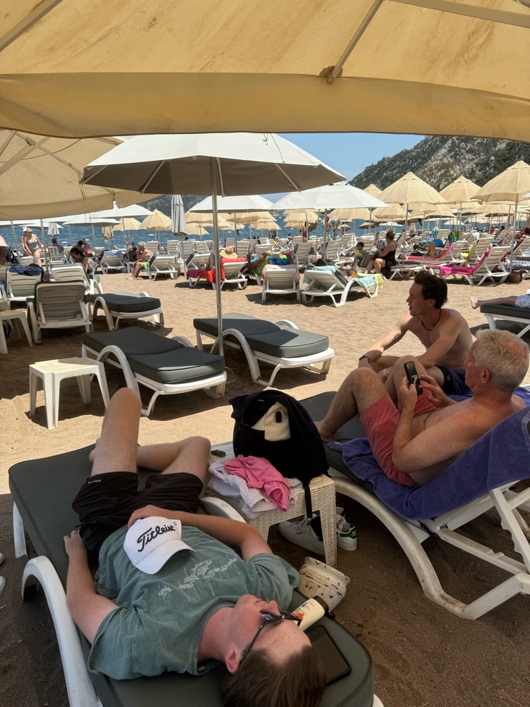 It hasn’t cooled off at all so we were happy to find a restaurant to recharge and have lunch. Pier 15 turned out to be a great place to spend a couple hours. Fun atmosphere, music and beach vibe. The manager chatted with us and shared he’s there 6 months a year but lives the rest of the time in eastern Turkey, a 20 hour drive. We inquired about getting beach chairs after lunch which he said were included since we ate at the restaurant. Perfect set up!