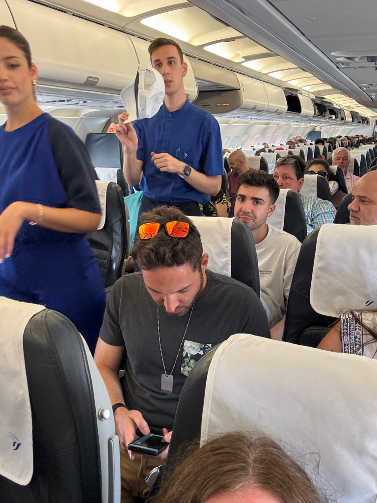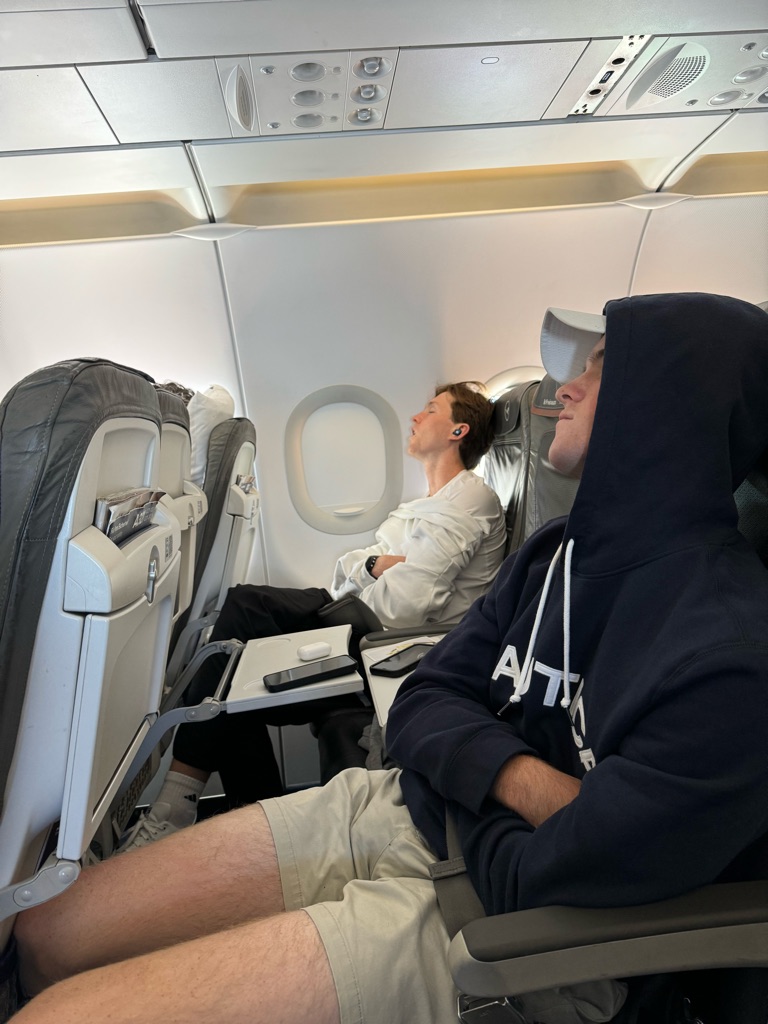 The European airports love to put you on a shuttle bus and drive you to the plane. \240Brandon learned the term “hold on to your hat” the hard way as his blew off while boarding the plane. \240Thankfully, a fellow traveler found it in her heart to run and grab it before it became too dangerous to retrieve. Shout out to the heroes.