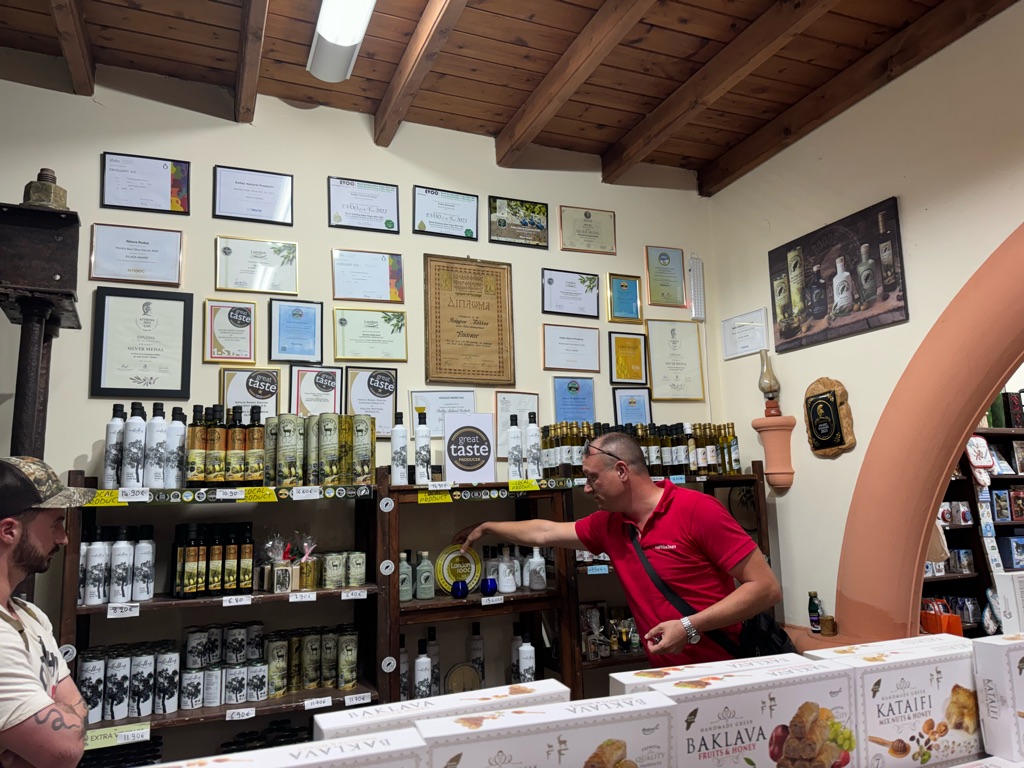 From there we stopped at a local olive oil store where they make their award winning oils. We each got a little spoon and tasted 8 or 9 different types of oils and learned about the benefits of the very natural production. They were proud the many international awards they have won in various competitions. We each had our favorites and collected a few bottles to bring home.
