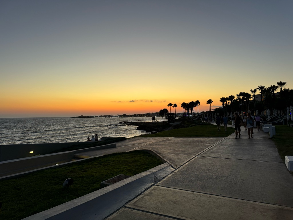 Knowing we had an early wake up call we headed back to the hotel, packed up and set out for our last dinner on Cyprus and enjoyed one last beautiful sunset…and dessert!