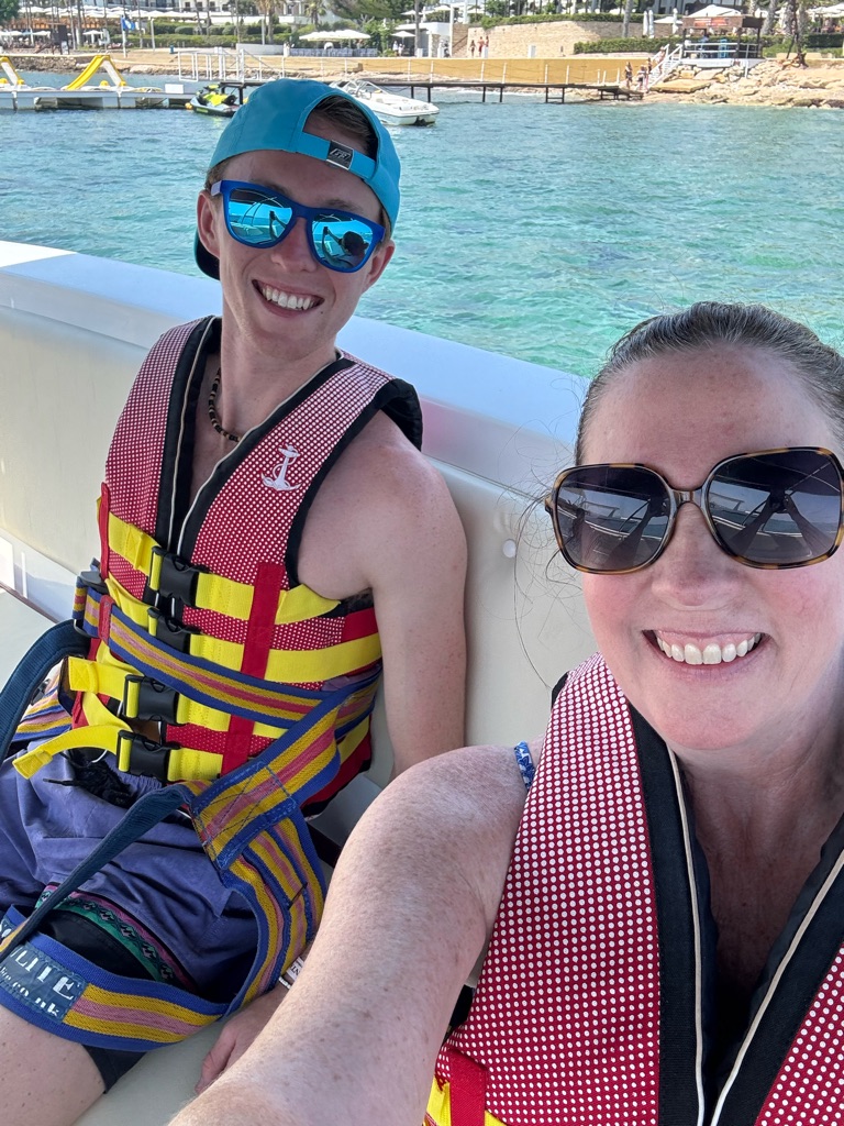 Cameron and I set off to do some parasailing while Jim and Brandon opted out. \240We had to trust the guys manning the boat knew what they were doing and up we went, accompanied by our fellow sailor from Latvia.
