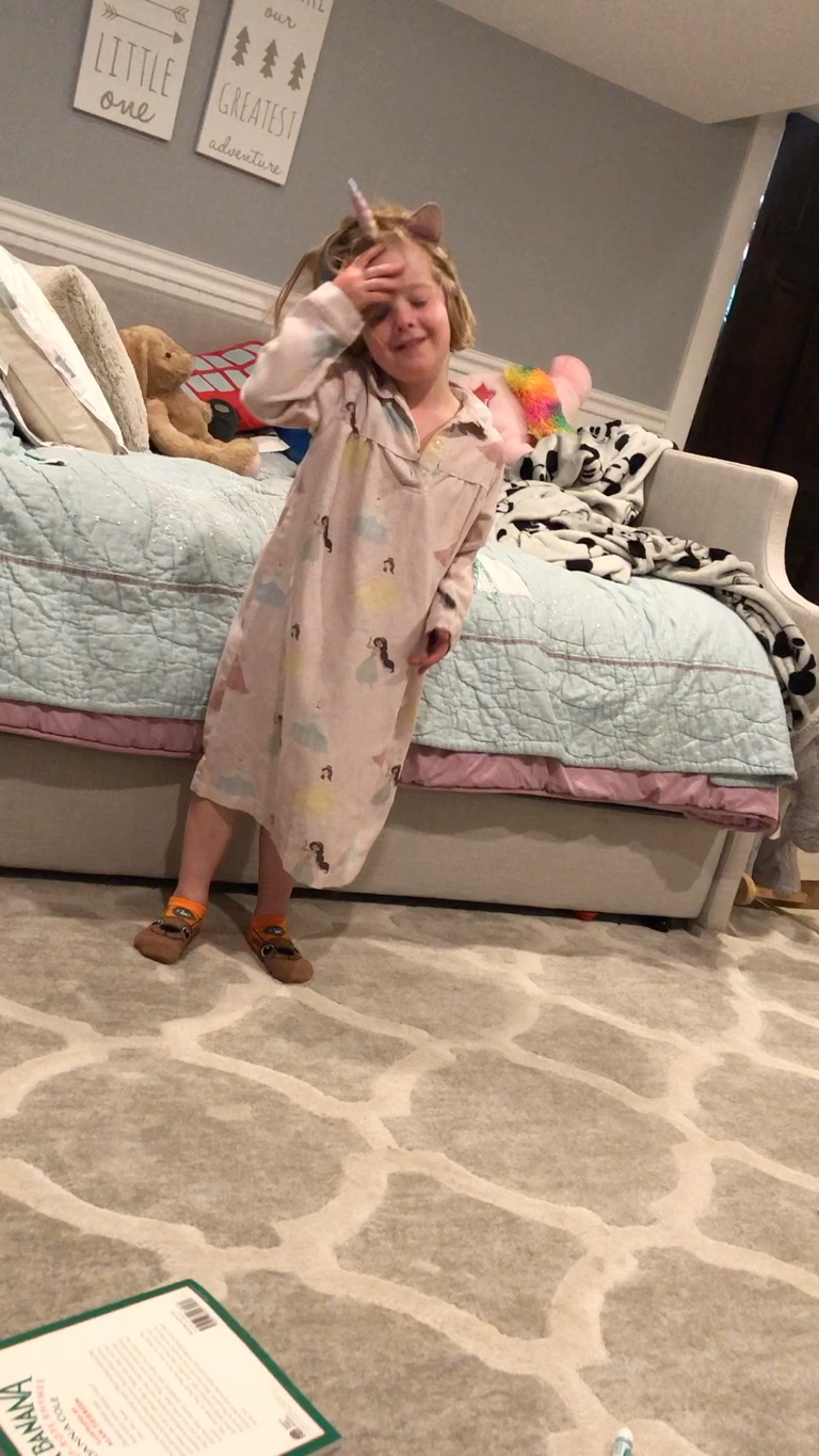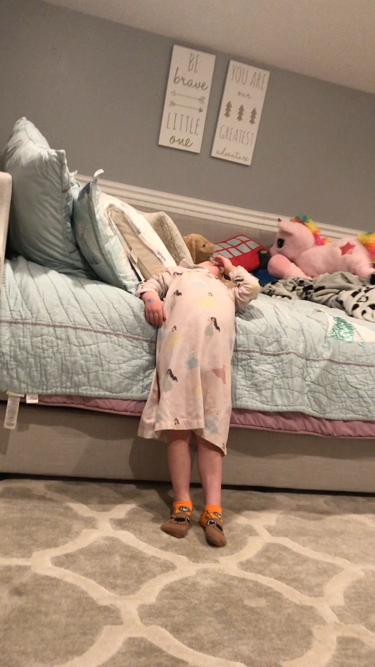 She was in bed and asleep at 6:00! She ate lots of dinner... they said she didn’t eat much at lunch today.