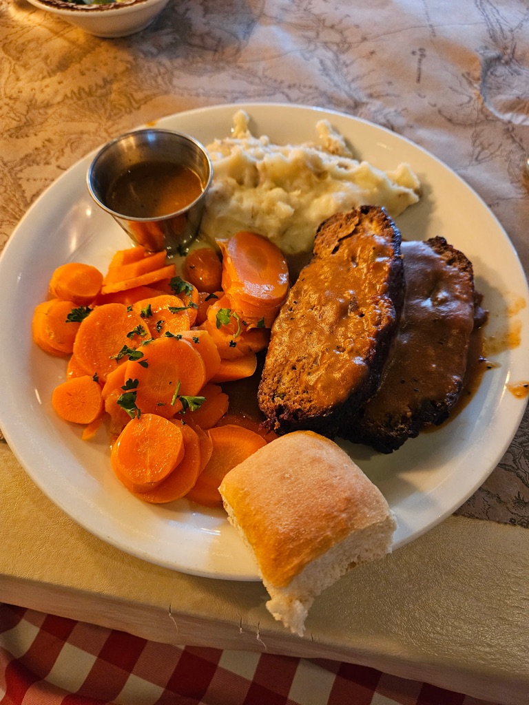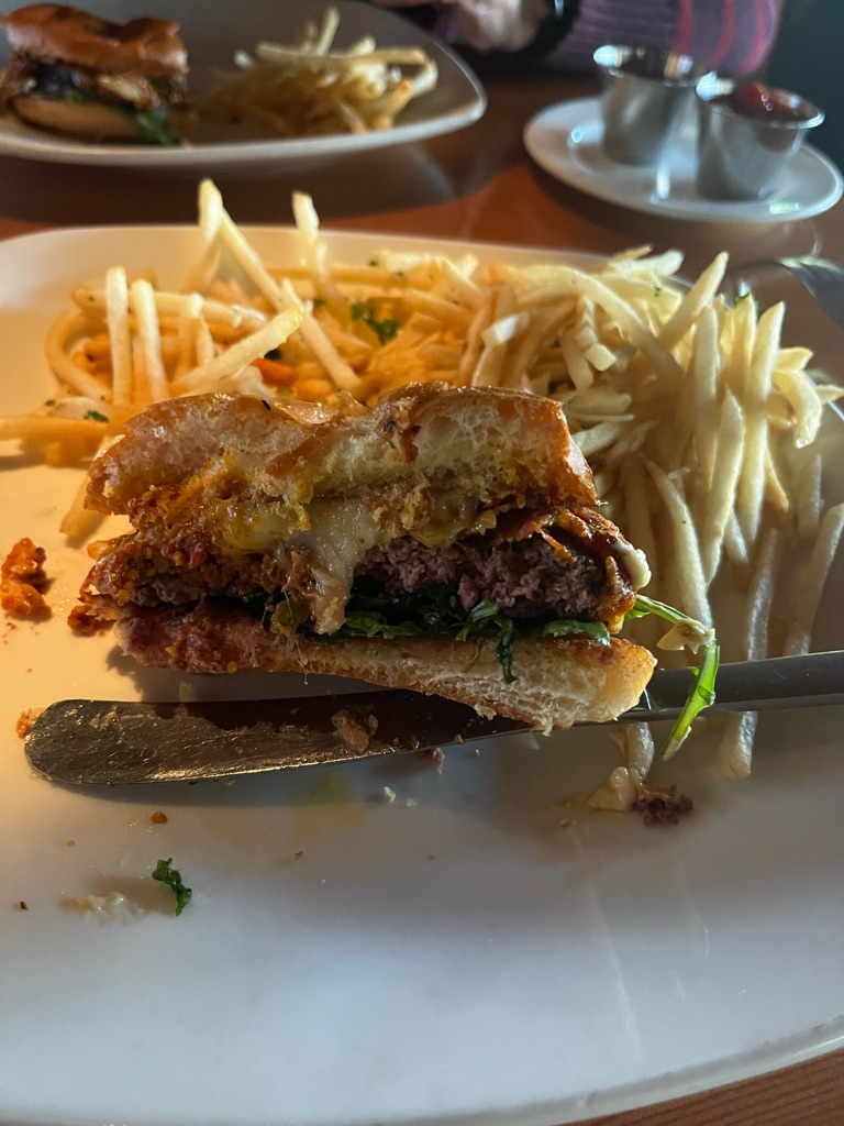 For dinner, we had bison, potstickers, and an elk burger. Gotta admit not a fan of bison and elk as they are very lean and don’t have a lot of flavor.
