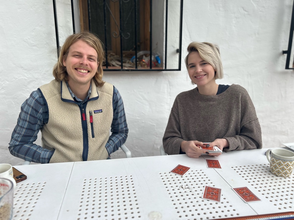 The trip was long but easy. Got one movie in, dinner was decent, sleep just a closing of eyes without any slumber. Frankfurt was an easy transition. Incredible airport with great food options. We had an everything bagel with salmon, horseradish and avocado? A cappuccino there and a cappuccino to take with. \2403 hours total to Malaga, then under an hour to Nerja. Janik and Lilli were waiting for us as we deplaned. So sweet. \240Had a bit of a struggle finding rhe bags as non-EU checked bags go to a different carousel. \240A passenger on our same flight was standing next to us with similar questions. \240We were the only 3 remaining at the carousel for our flight so figured the rest of the plane found their luggage and ours was lost. \240I was standing in line for lost bags when he returned from the mystery 31 area, that we had already tried, with his successful retrieval. We returned to 31 with our good Samaritan’s knowledge and joyfully found our bags sitting side by side. \240What a relief!