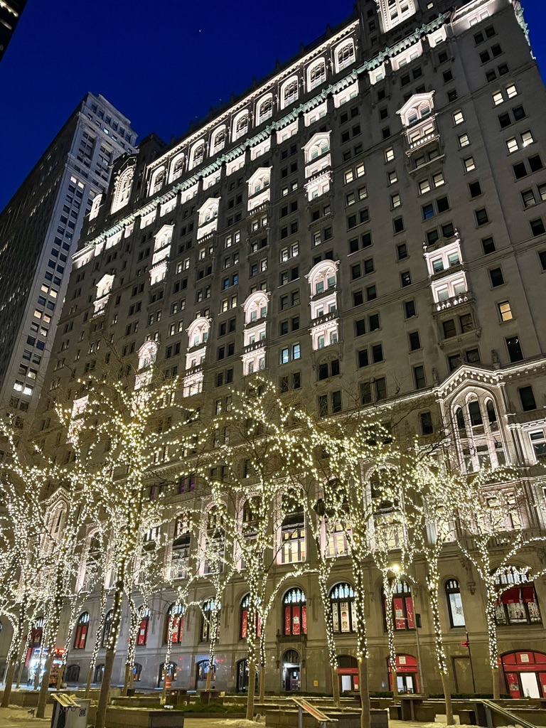 Les décorations de Noël sont toujours là.