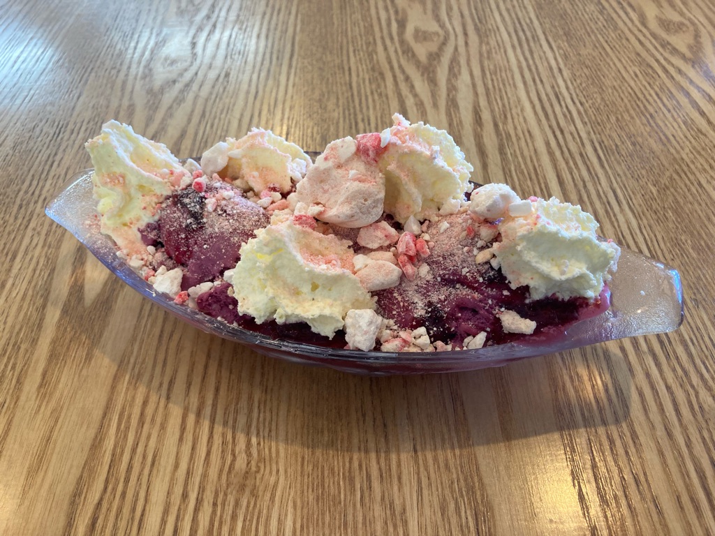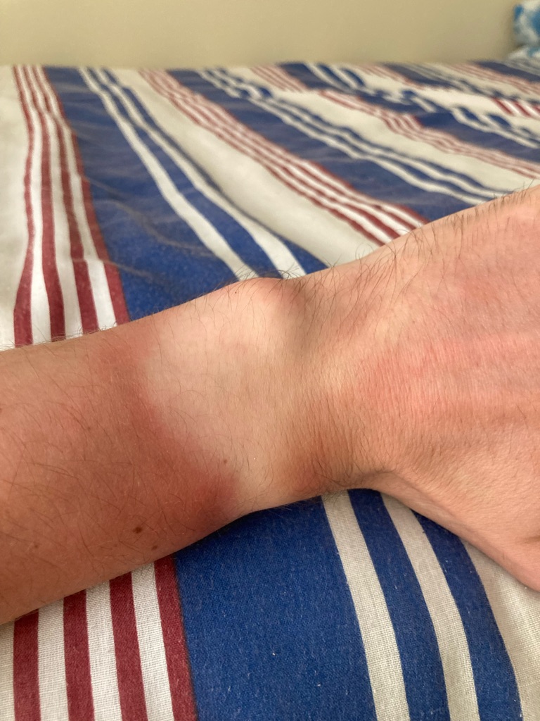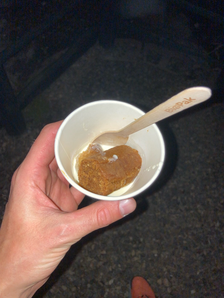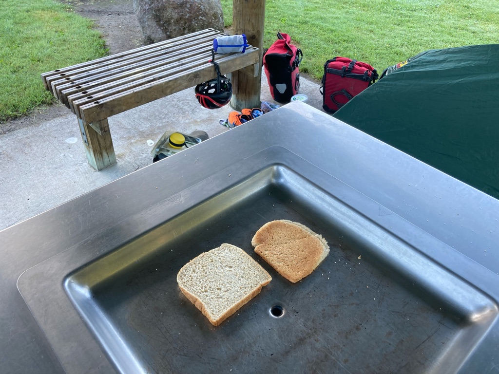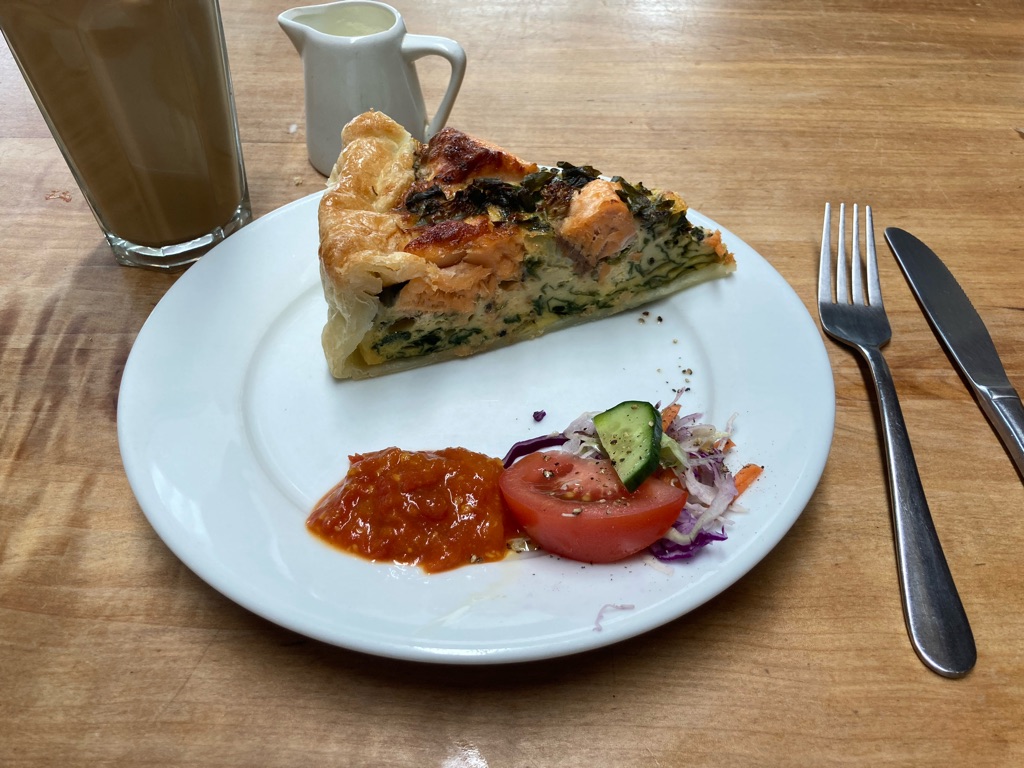 I eventually happened across ‘The Village Cafe’ which had two bathrooms. There was a conveniently placed bike rack outside too. Perfect. I locked the bike up, and got my first aid kit and flannel out of my kit - I’ll be needing those! I decided to put the rain jacket on, so that I looked more presentable by covering up my muddy, sweaty T-shirt! Inside, there weren’t any plug sockets so I put the GPS and my phone on charge with the power brick. The food looked nice, and I went to order - but they were closing at 2pm and weren’t serving. I order a ‘healthy banana and chocolate protein shake’ which seeme like a good recovery option. It took a while to prepare, and I had only got 15 minutes left to clean up! I got into the bathroom, which was helpfully spacious and had a liquid soap dispenser, and gave my legs a good scrub with the flannel. I felt like I wouldn’t have enough time to finish the job before closing time, so tidied up, collected my kit and headed outside back to the bike. I gave my cuts and grazes a good clean with some antiseptic wipes, and put some plasters on. Bit of an odd look for the high street, but needs must!