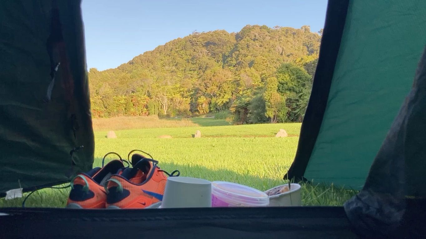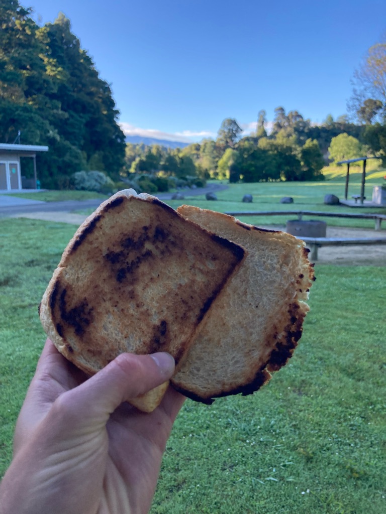 An American guy in a hat started chatting to me. \240I was pretty knackered - I hadn’t eaten or drunk through the whole ordeal, and I’d have much prefered to do that. He’d been doing a solo hike (or ‘tramp’ in New Zealand parlance) which did sound quite interesting though. He had a tiny rucksack - must be great and lightweight kit. I asked what he did for food - he didn’t carry a cooker, and instead prepared instant dried noodles by soaking them in cold water for 3 hours. Blimey. I gave him one of my ‘Afgan’ chocolate biscuits.