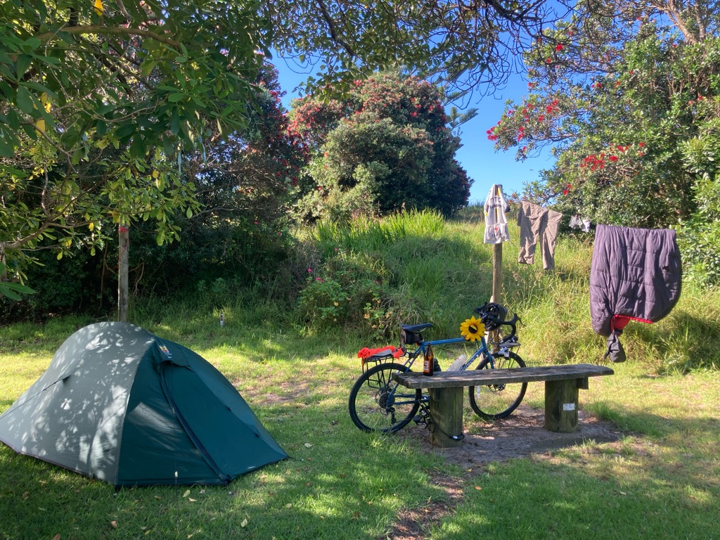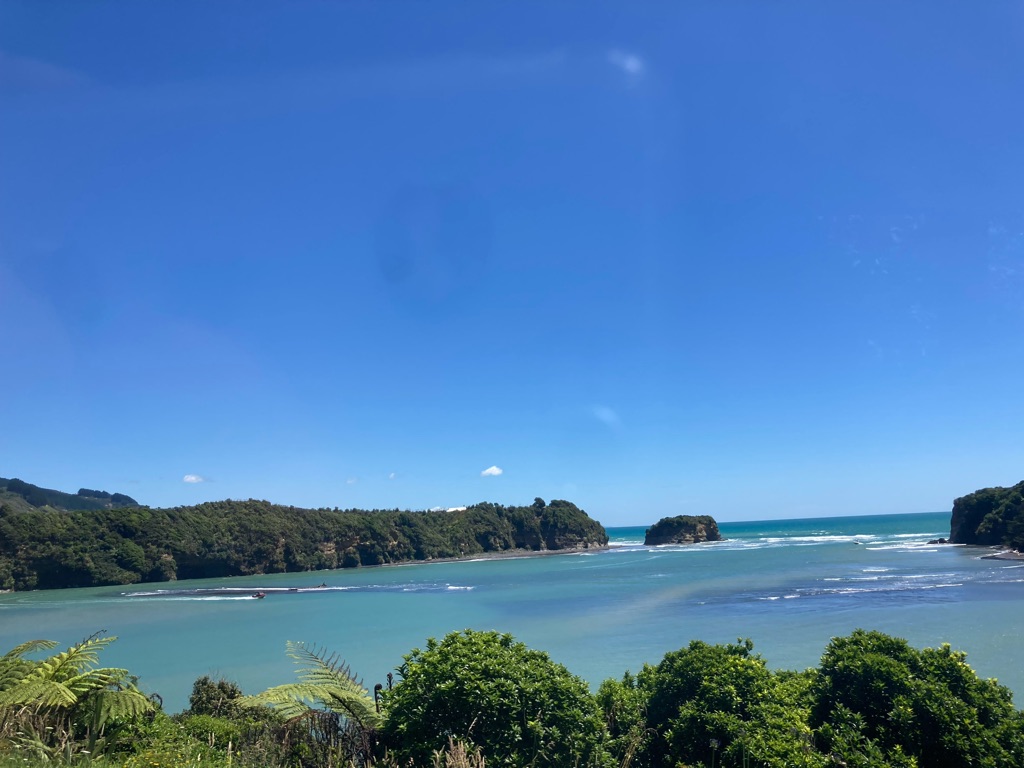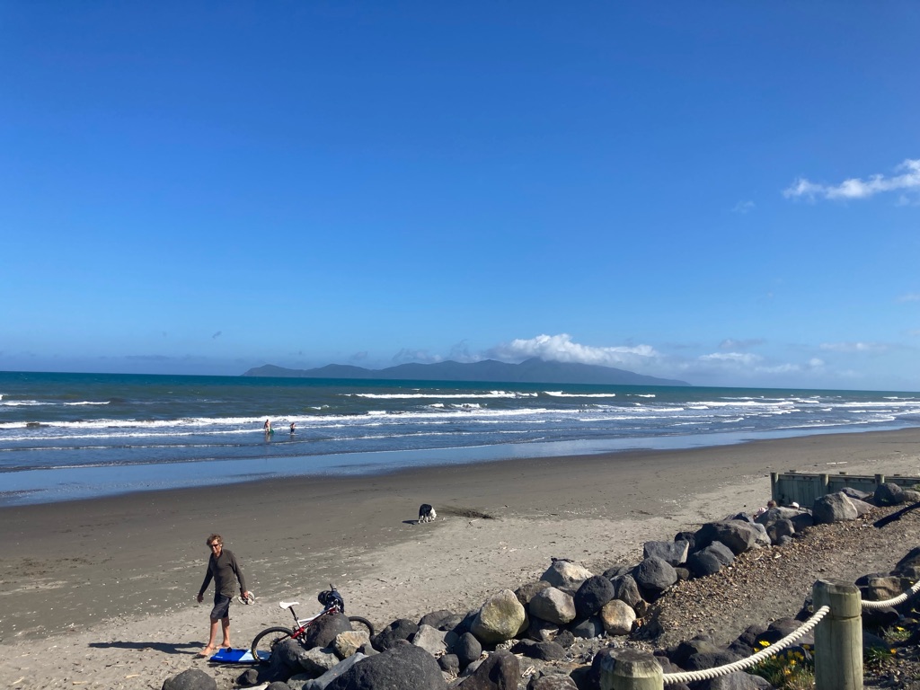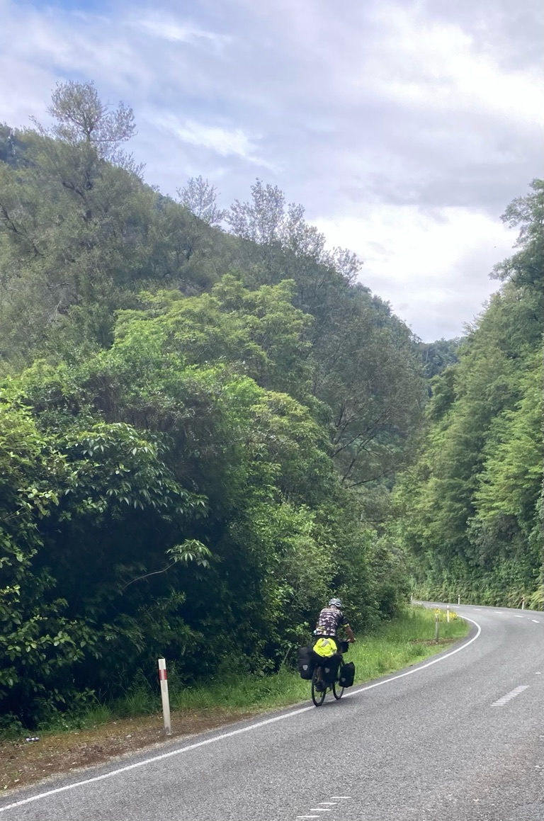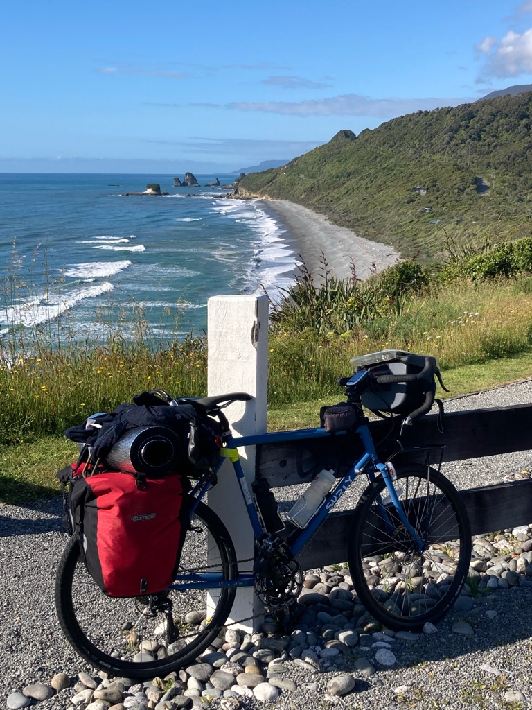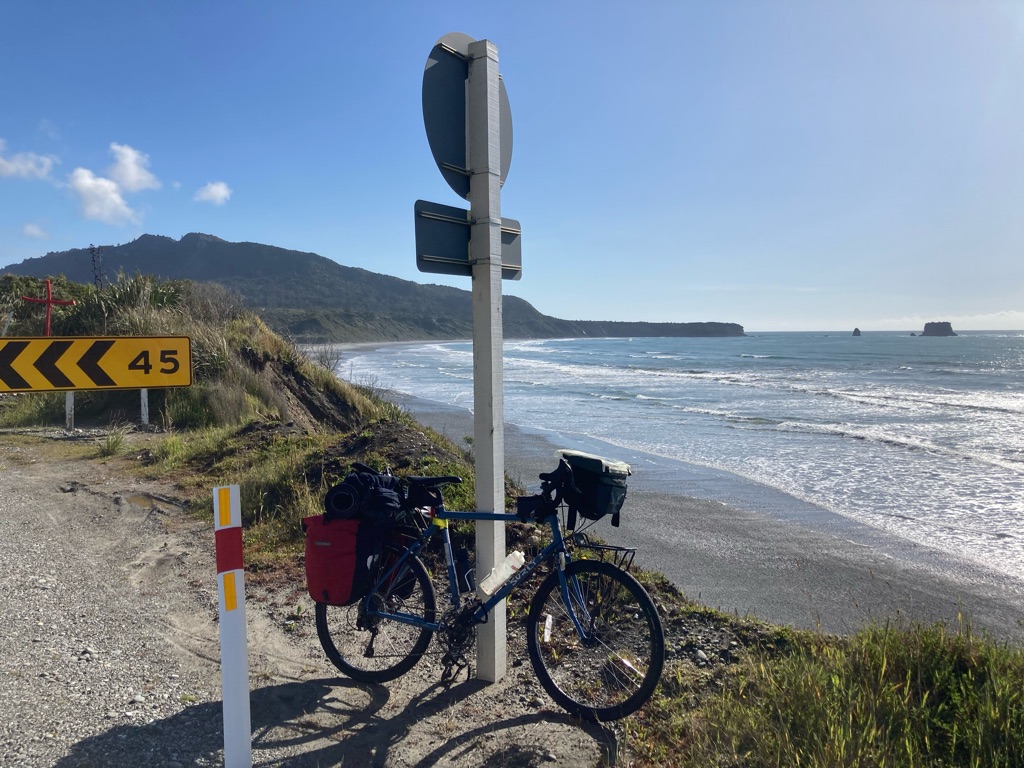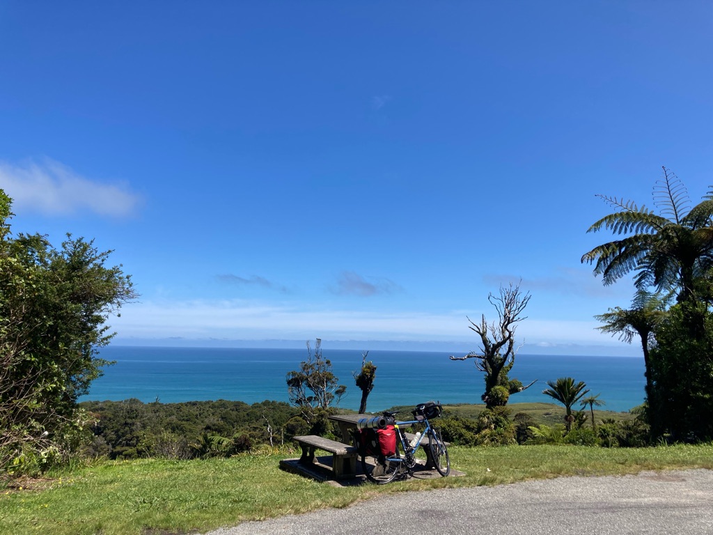 We got to Kaiteriteri at 1230. There was very dry powdery sand at the top of the beach, so a couple of people helped me push the bike to the top. As I stood with the bike at the road I didn’t really know what to do next. The plan was to ride South down the coast to Motueka and then onto Nelson, but I wasn’t sure after all of the excitement if I felt like doing that.