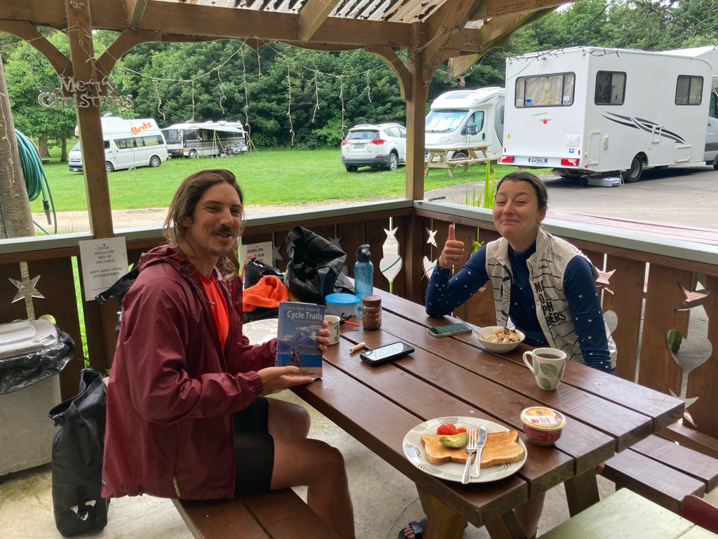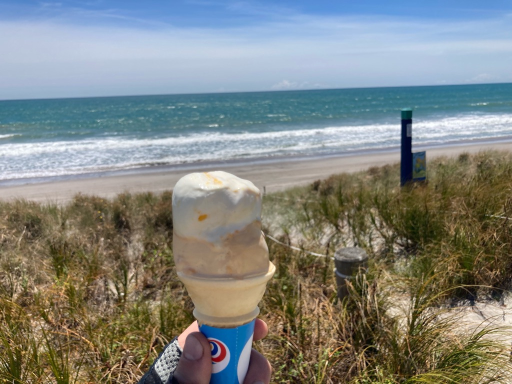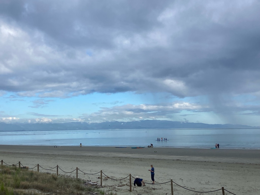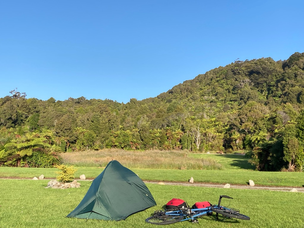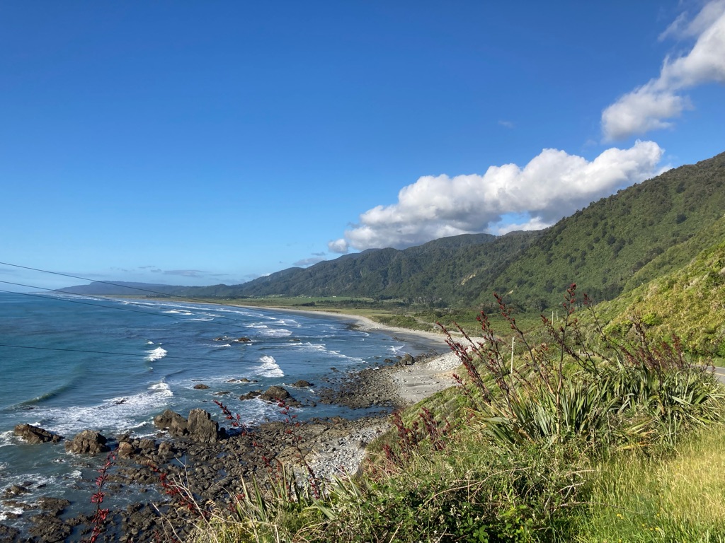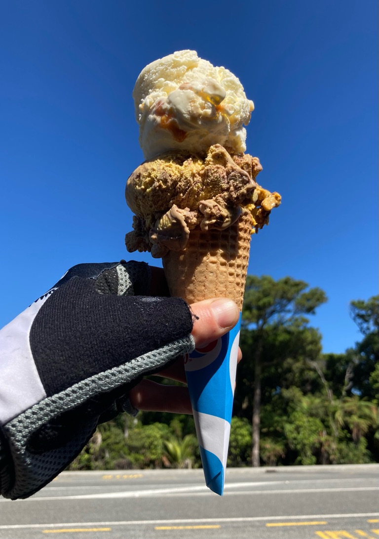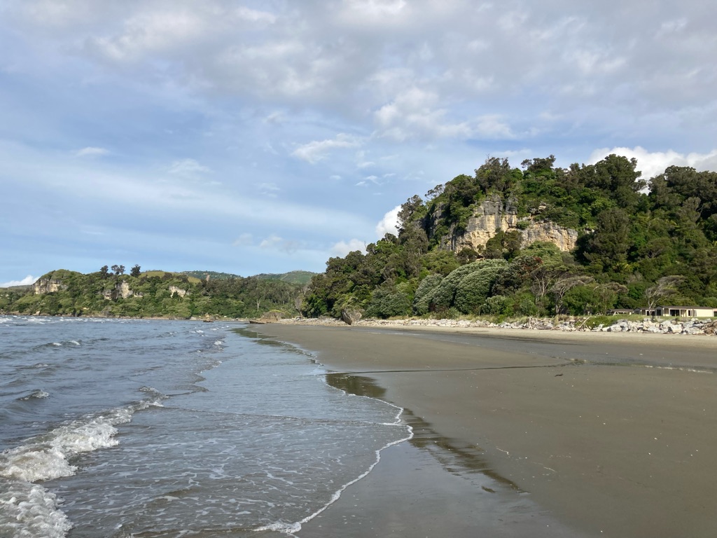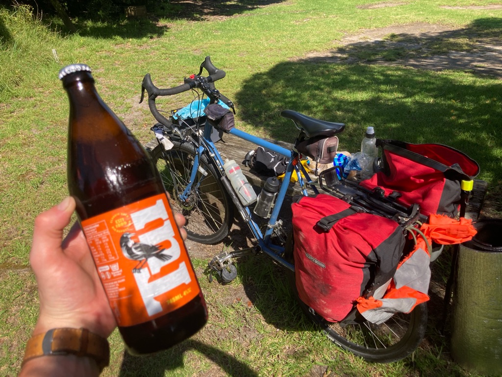 We got to Kaiteriteri at 1230. There was very dry powdery sand at the top of the beach, so a couple of people helped me push the bike to the top. As I stood with the bike at the road I didn’t really know what to do next. The plan was to ride South down the coast to Motueka and then onto Nelson, but I wasn’t sure after all of the excitement if I felt like doing that.