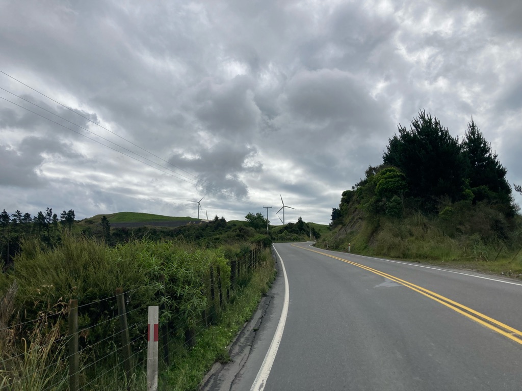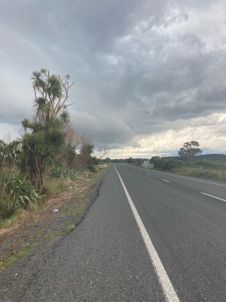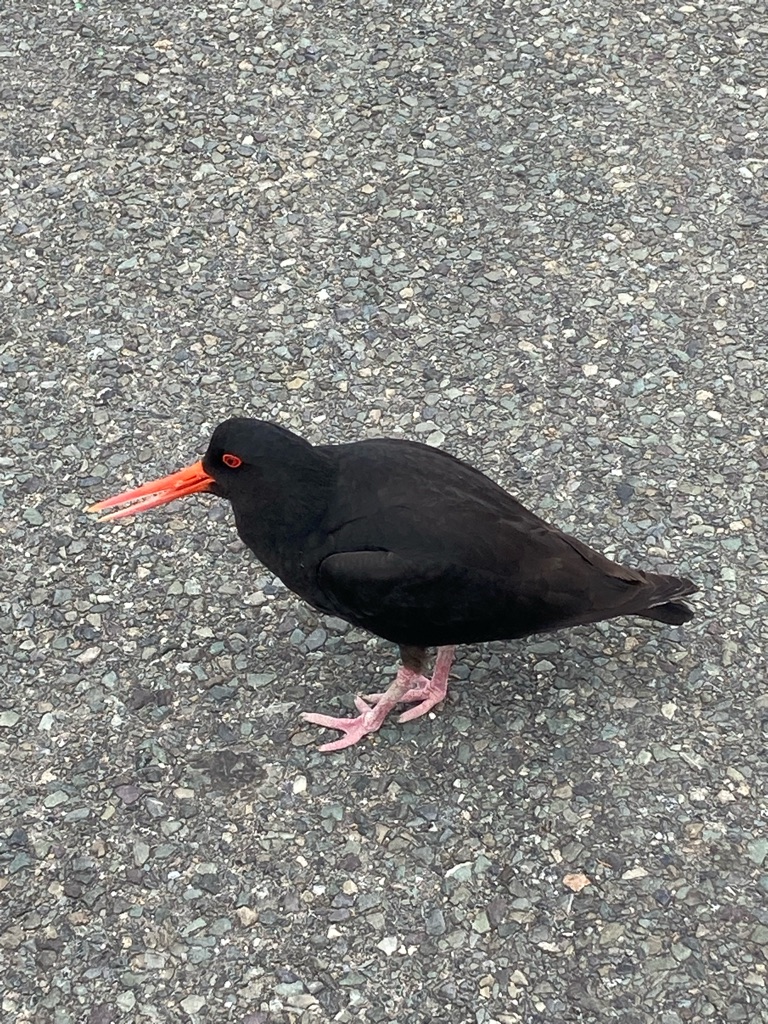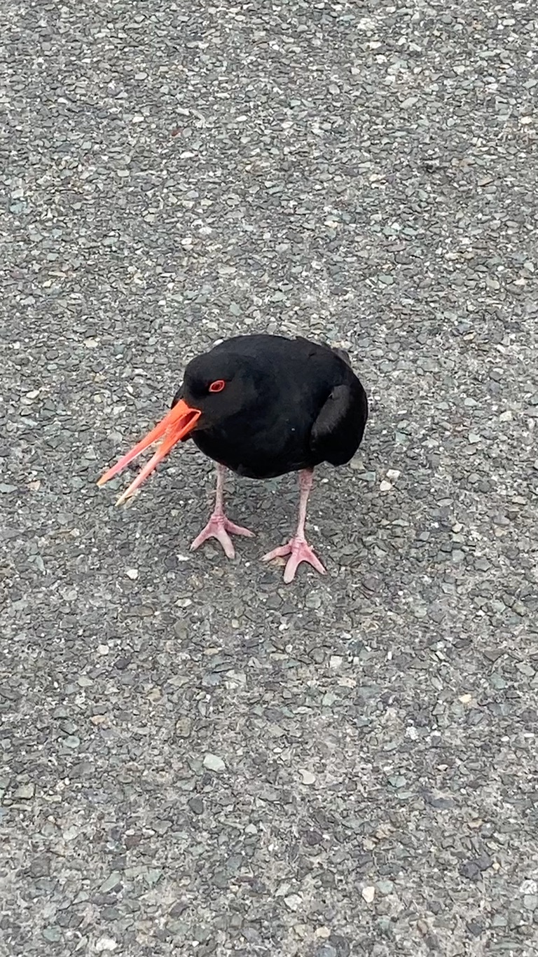 At one point, in contrast to the shy Pukeke birds earlier, a wader with black feathers and an incredibly long red beak flies towards me, chases me and then stands on then road in front of the bike. No idea why (territorial I guess?), but it makes for some good pictures. Googling later, I think it was probably a ‘variable oystercatcher’. According to Wikipedia, its Maori name is torea-pango, and they are (unsurprisingly) also known as 'red bills'.