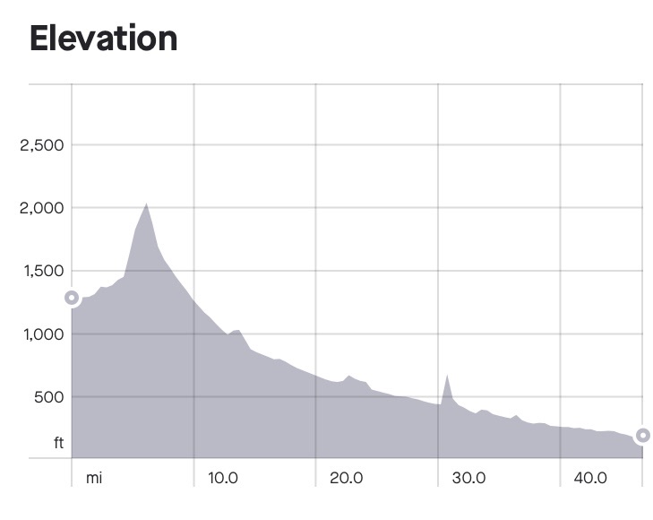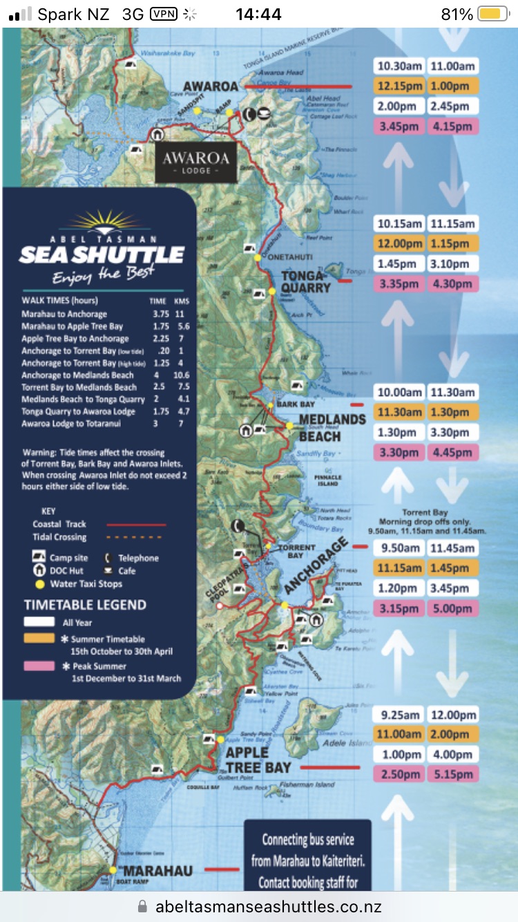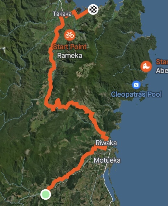 The ferry was due to leave at 1045 from Totaranui, and I needed to get there at 1030 to collect my boarding pass. Apple Maps and the GPS suggested it was 14 miles, with a 250 meter climb and descent to the coast so leaving at 0830 should give 2 hours - plenty of time.